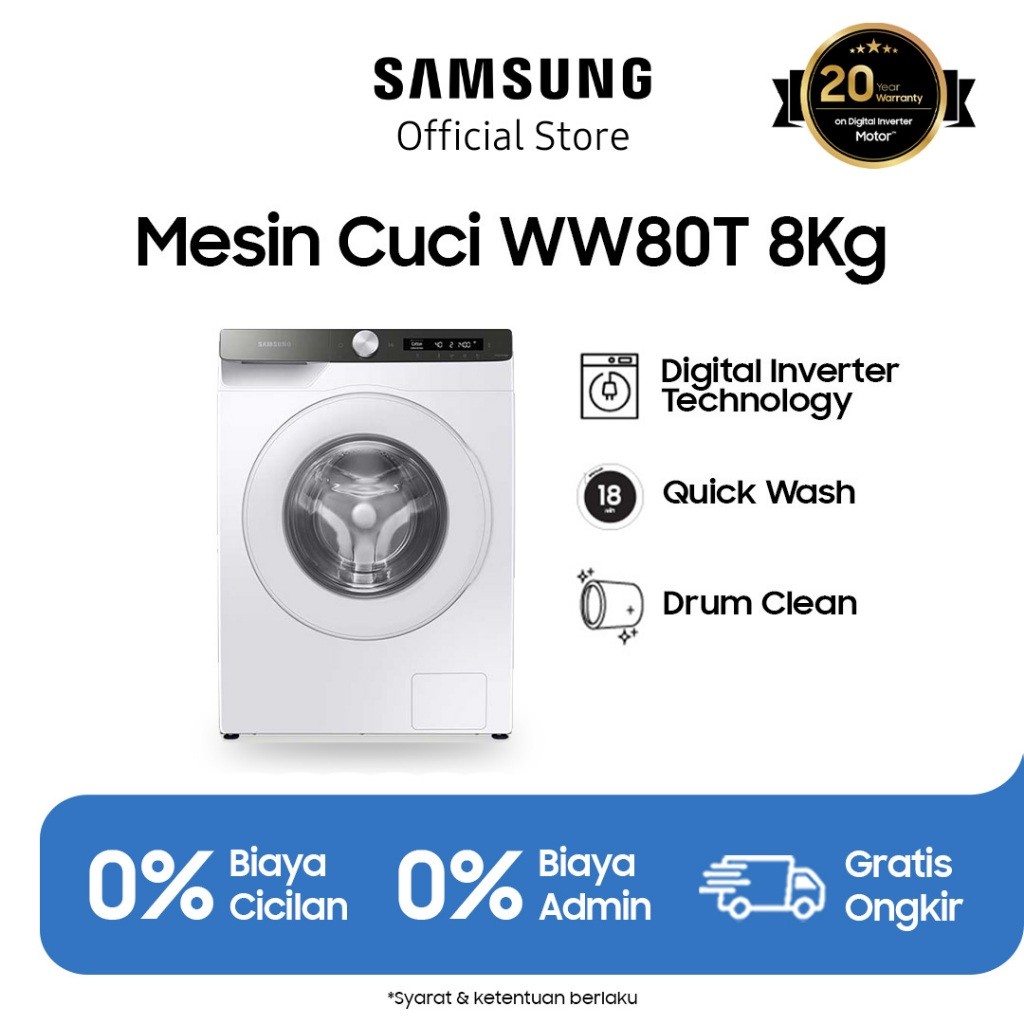 Samsung Mesin Cuci Front Loading 8 Kg dengan Ecobubble™, AI Control, Steam - WW80T504DTT/SE