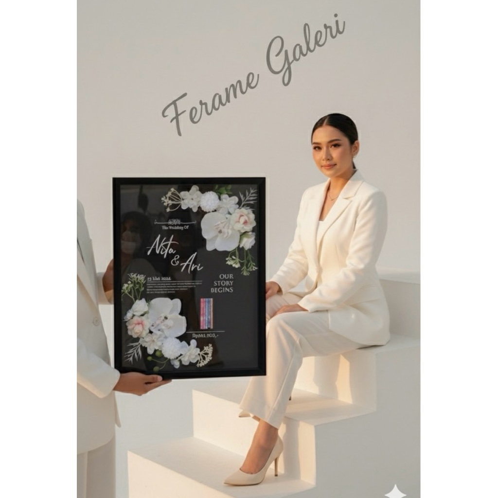 Bingkai Mahar Pernikahan 30x40 - Bingkai Mahar Akrilik Bunga Anggrek Tema Black White - Mahar 30x40