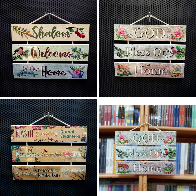 Pajangan Rohani Hiasan Dinding Gantungan Pintu Kristen Triple Shalom Welcome God Bless Home Kasih Suka Cita