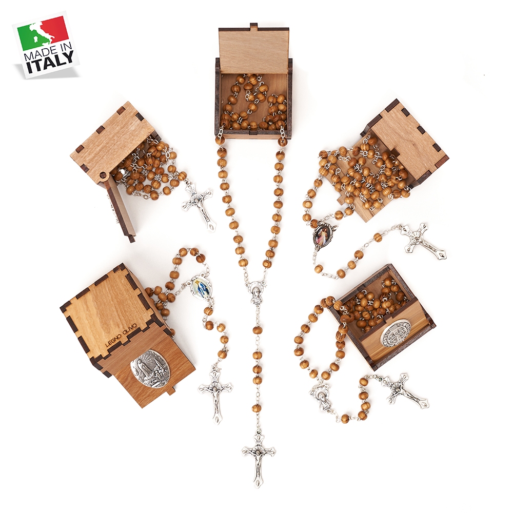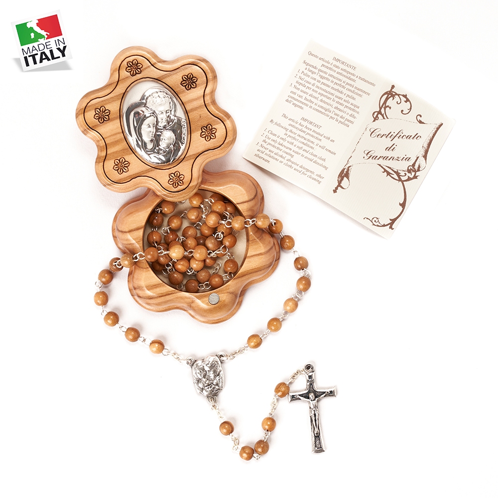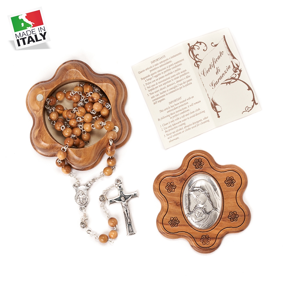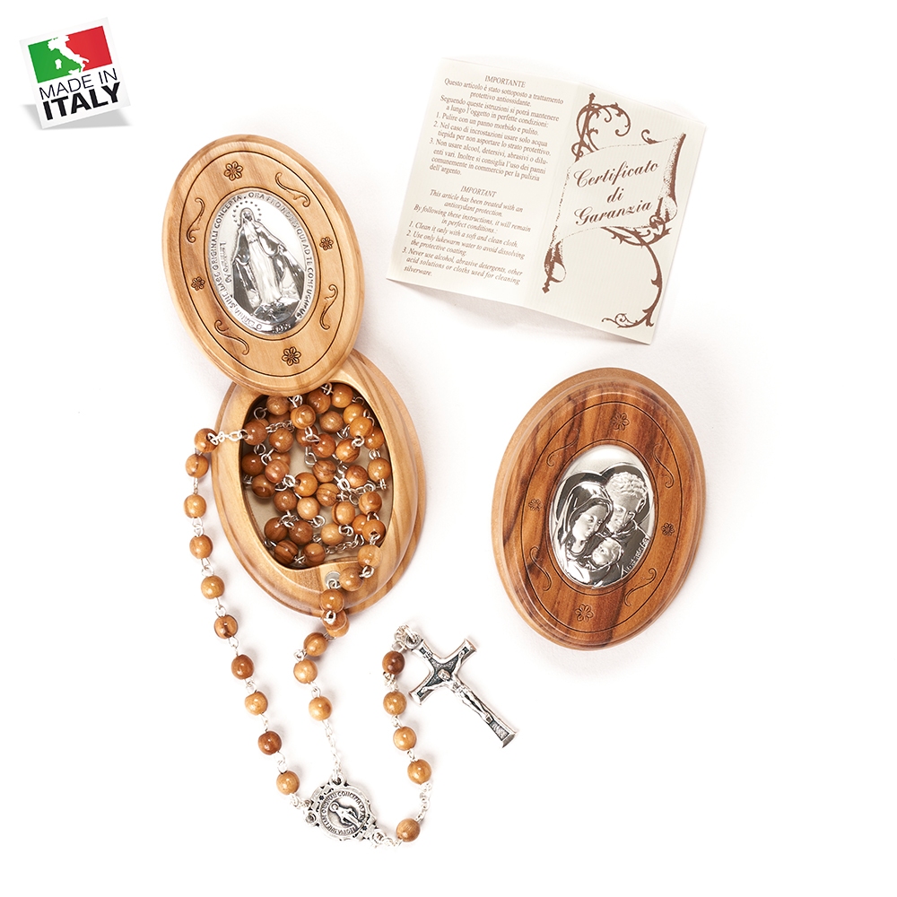Aksesoris Fashion Salib Katolik Rosario Kayu Olive Kotak Oval Bunga Kotak Kayu Unik Made in Italy