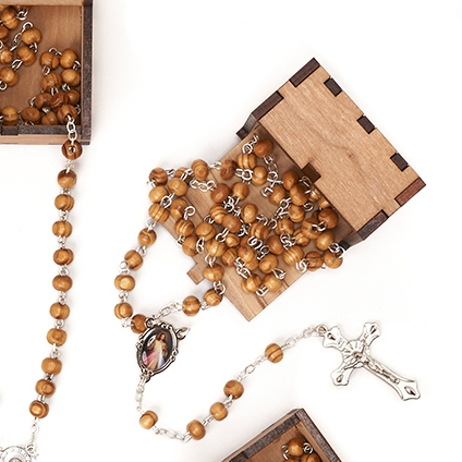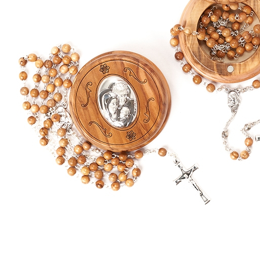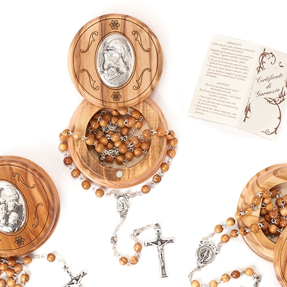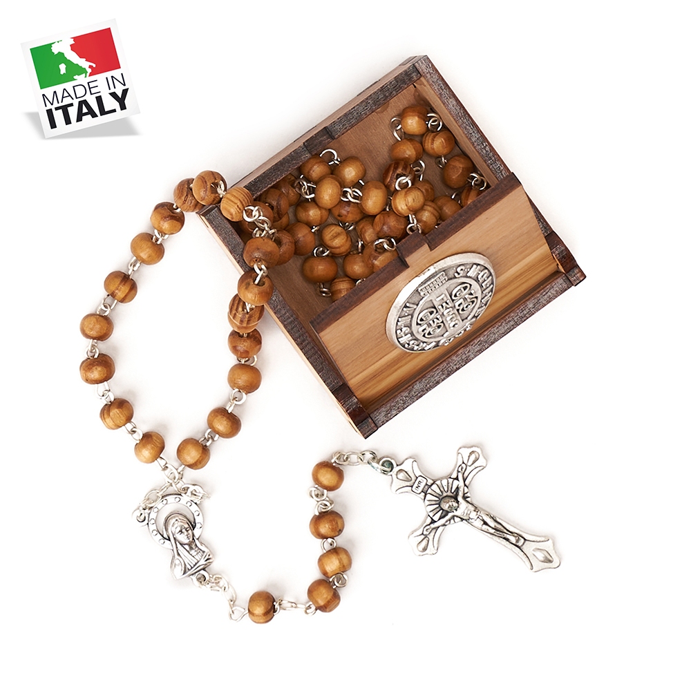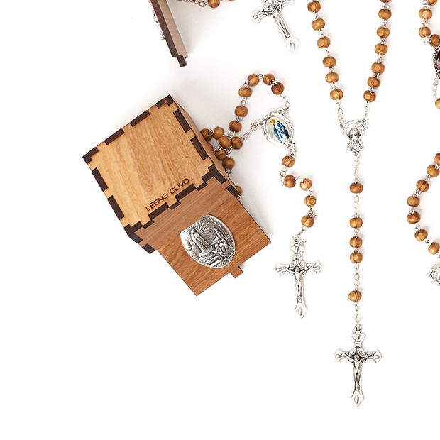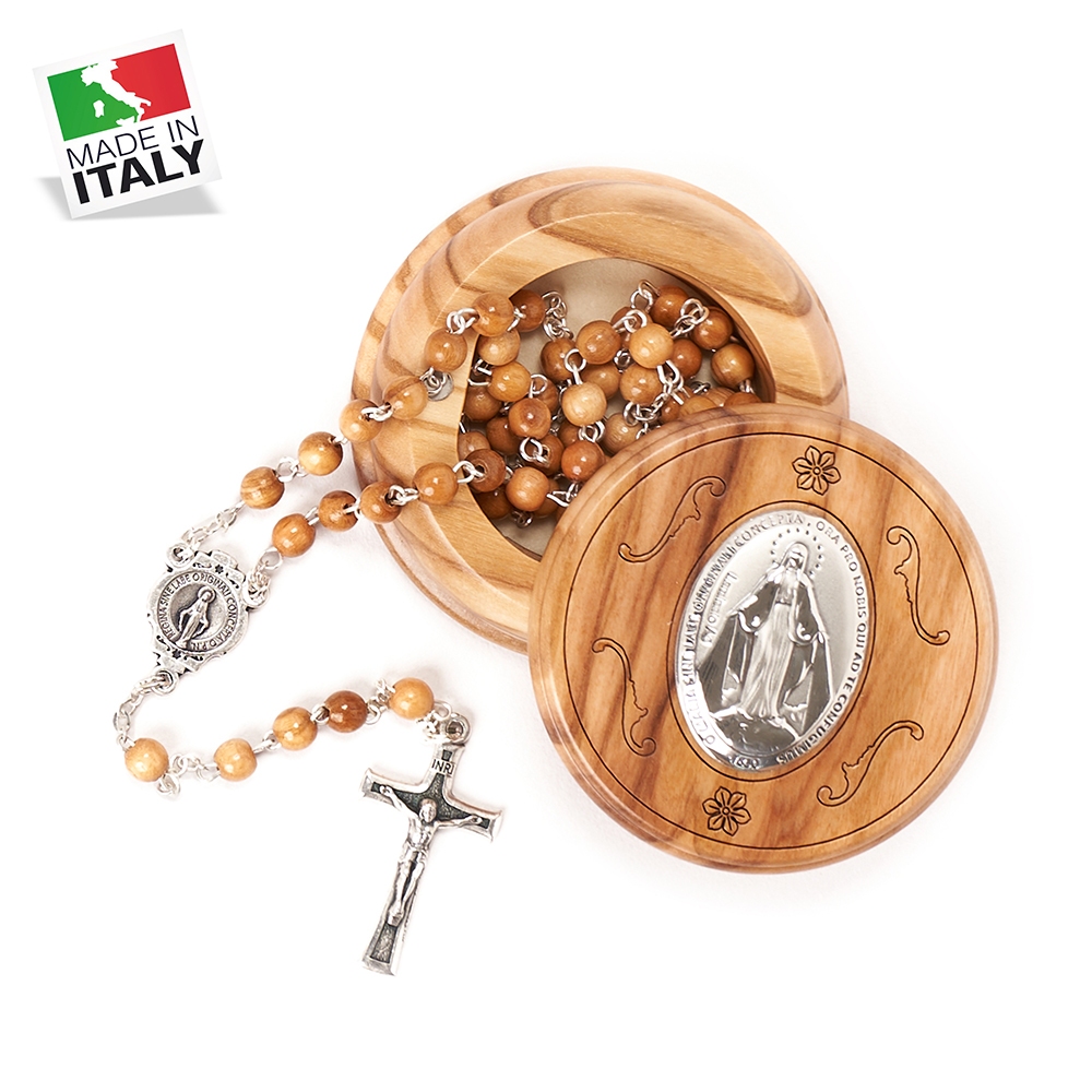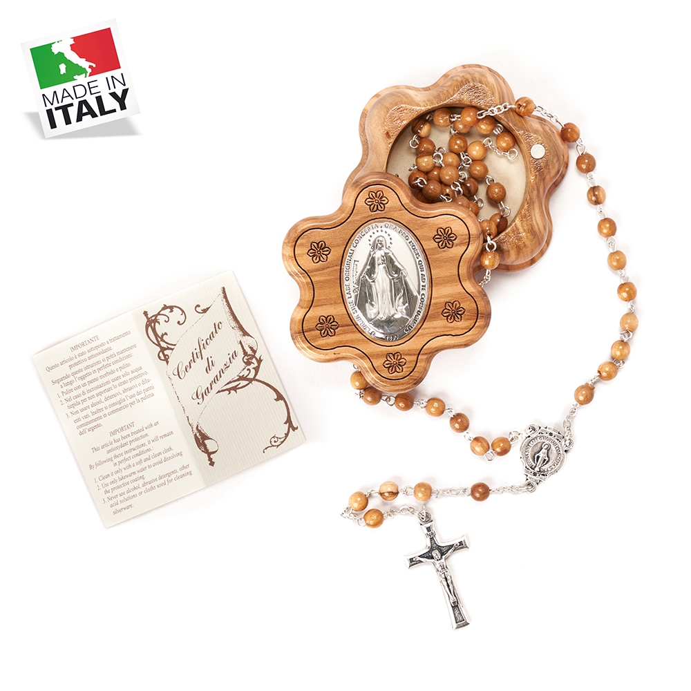 Aksesoris Fashion Salib Katolik Rosario Kayu Olive Kotak Oval Bunga Kotak Kayu Unik Made in Italy