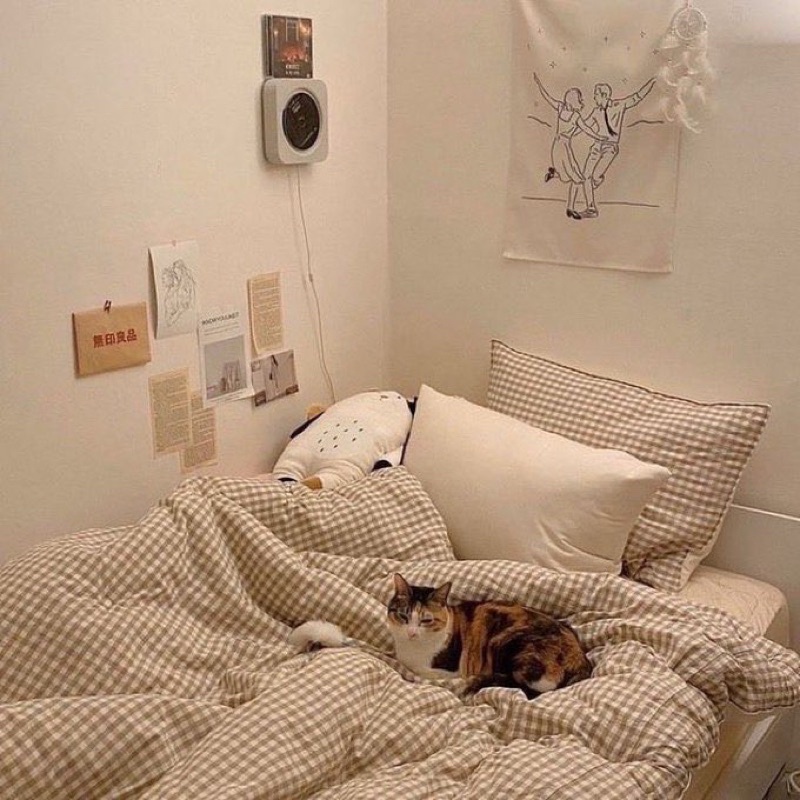 Beddo Chingu Sprei Aesthetic Motif Gingham Korea Premium Quality 180/160/120/100 | BEDDO CHINGU
