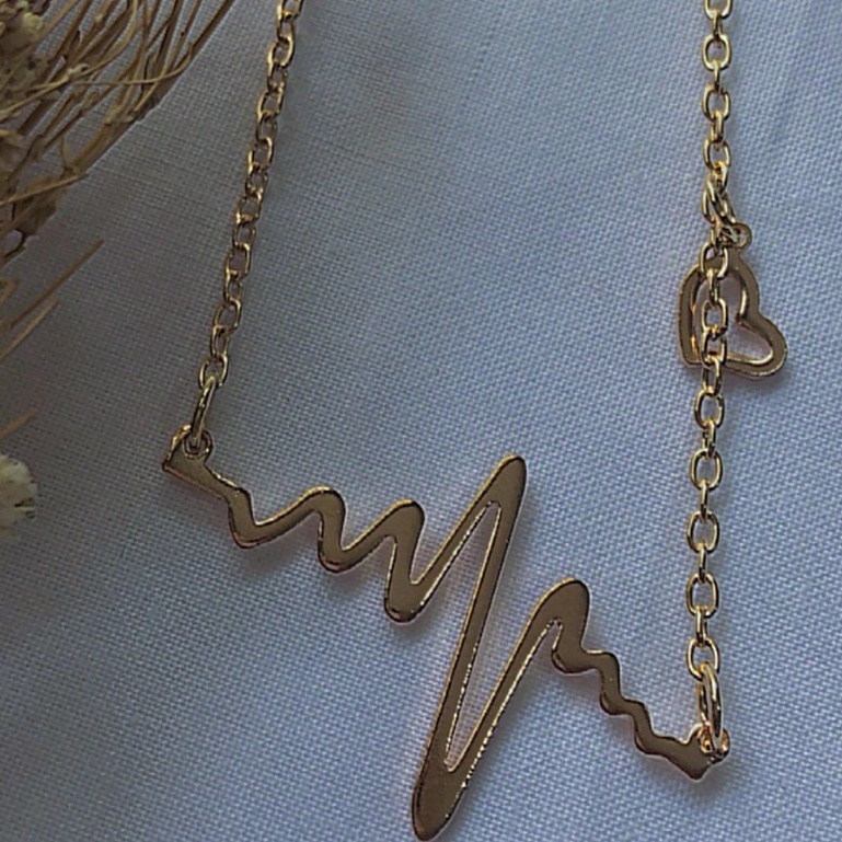 |AYN| Kalung Rantai Desain Liontin Detak Jantung Steel Gaya Retro kekinian unik