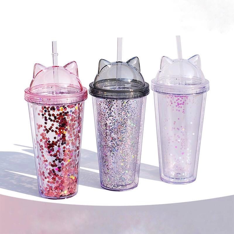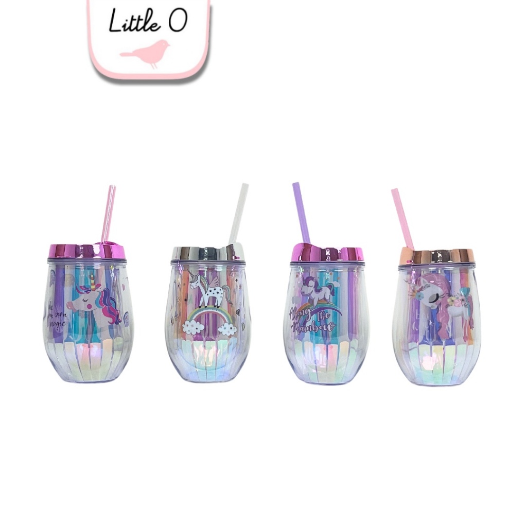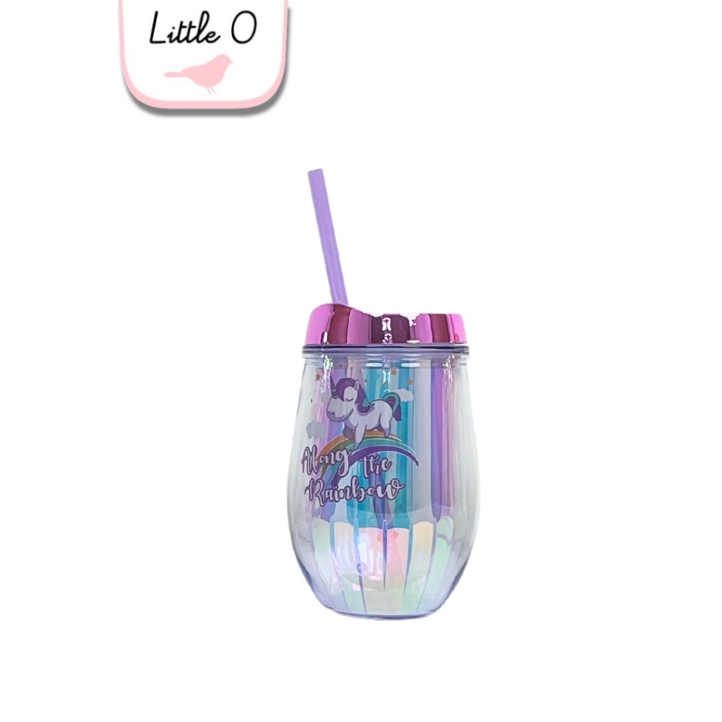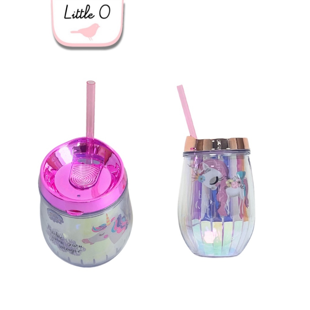 LITTLE O BPA FREE Hologram Tumbler Unicorn Tumbler Lucu Dengan Sedotan Tumbler Plastik Gelas Plastik