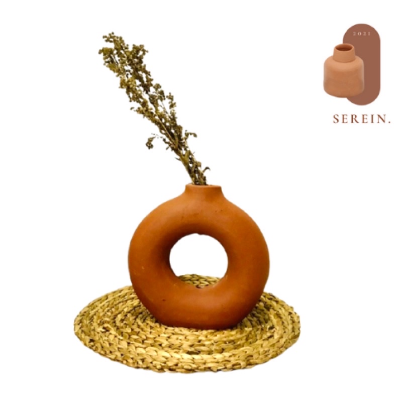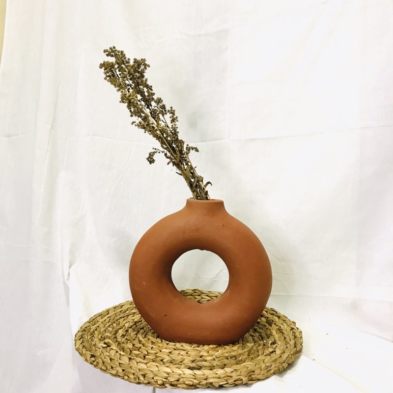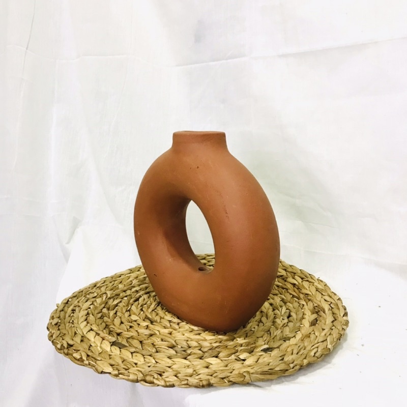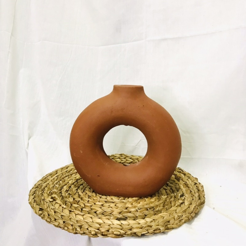 ( PROMO KHUSUS ) Vas Bunga Terracotta Donat / Pot Terakota Tanah Liat Home Decor