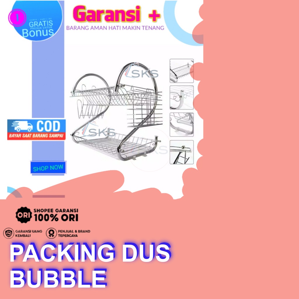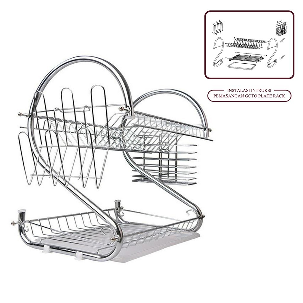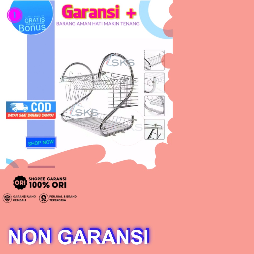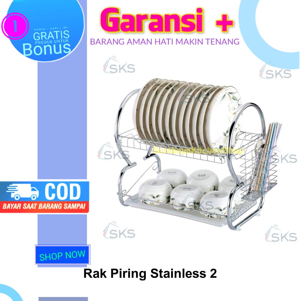 Rak Piring Gantung Tempel Dinding 2 Susun Stainless