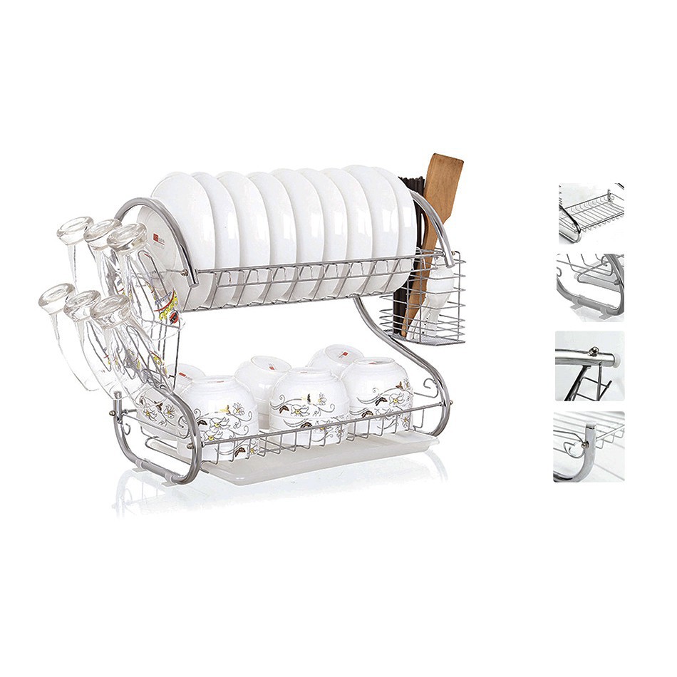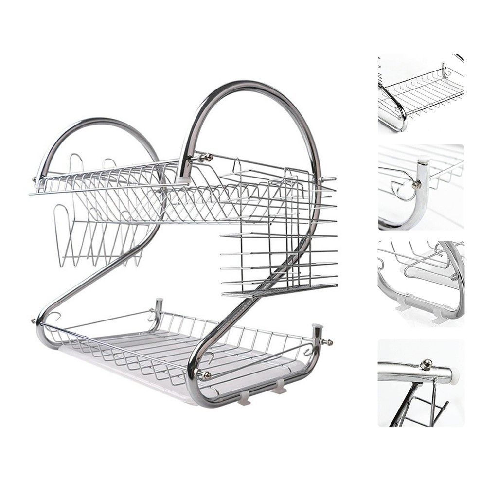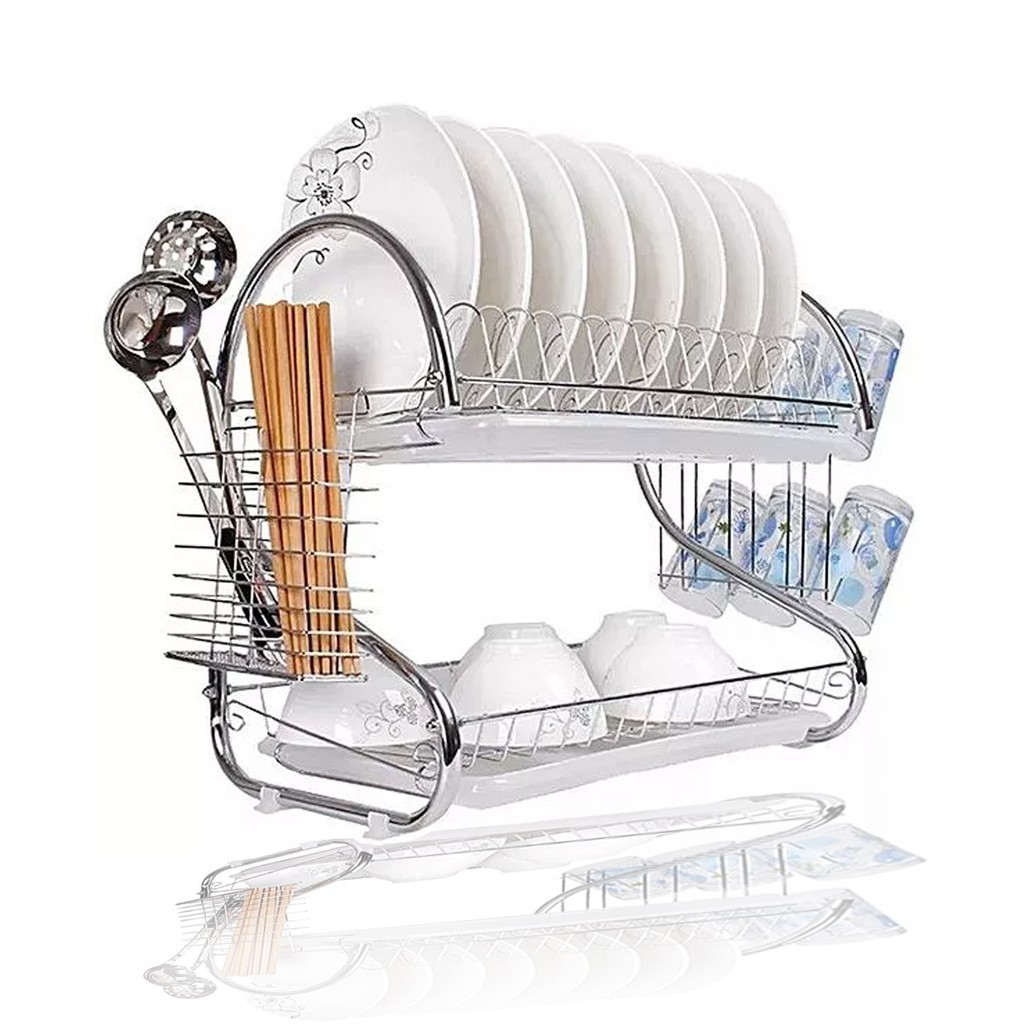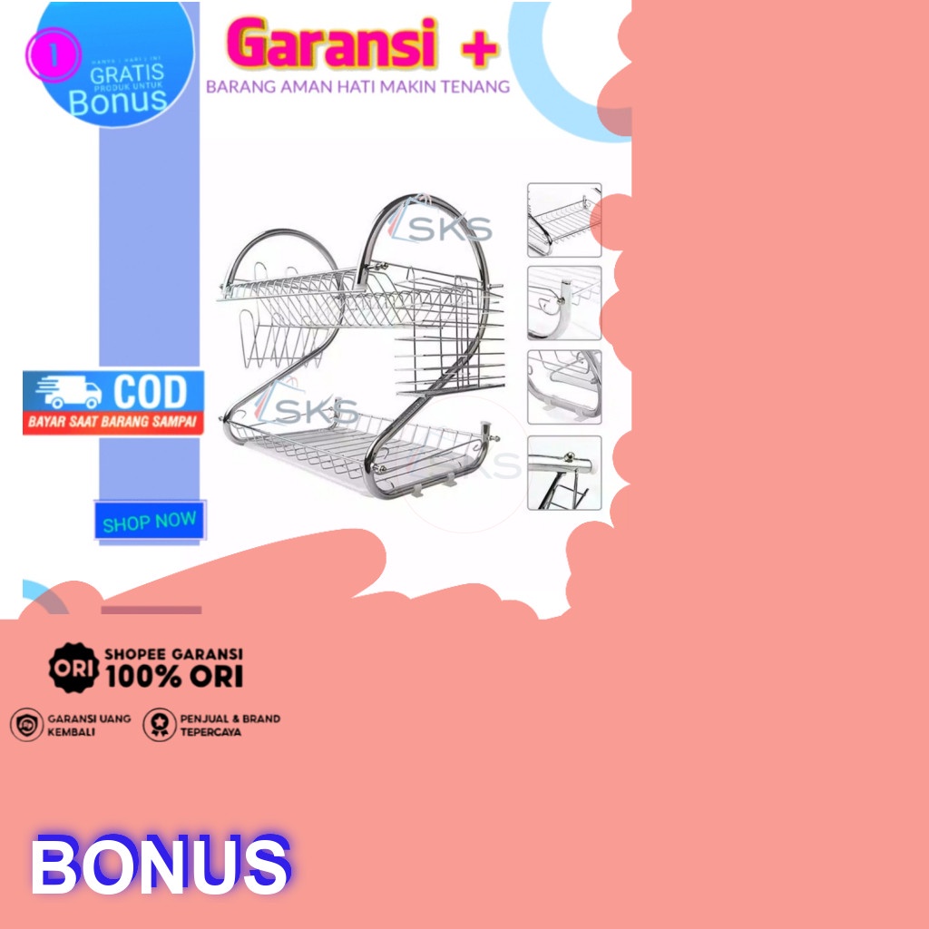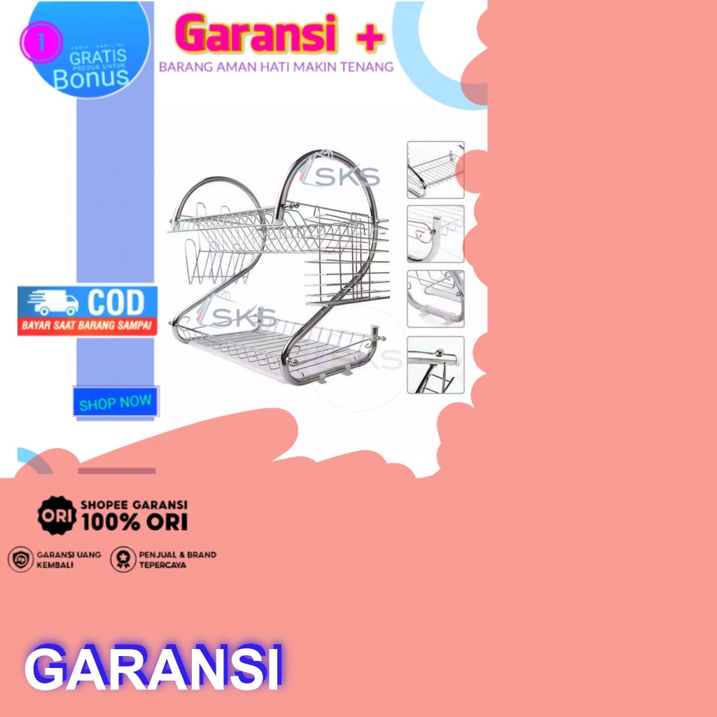Rak Piring Gantung Tempel Dinding 2 Susun Stainless