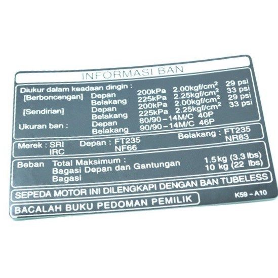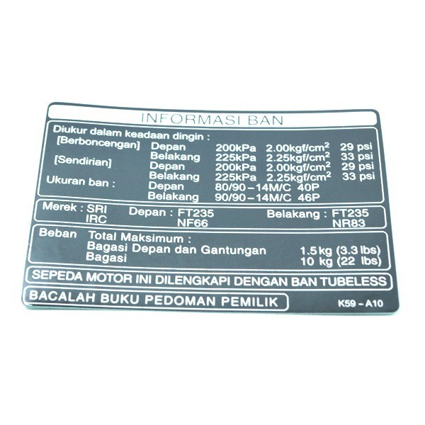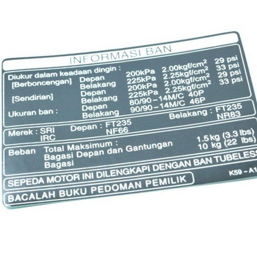 Label Tire Indonesia BeAT eSP Vario 125 eSP Vario 150 eSP 87505K59A10
