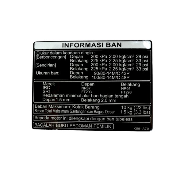 Label Tire - New Vario 150 eSP K59J 87505K59A70