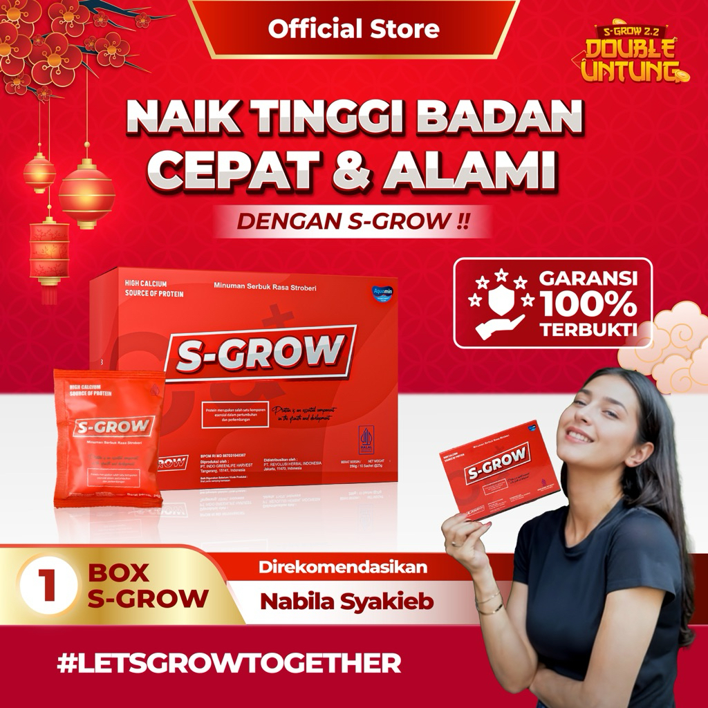 S-GROW 1 BOX – Susu Peninggi Badan Terbaik untuk Remaja dan Dewasa | Varian Strawberry