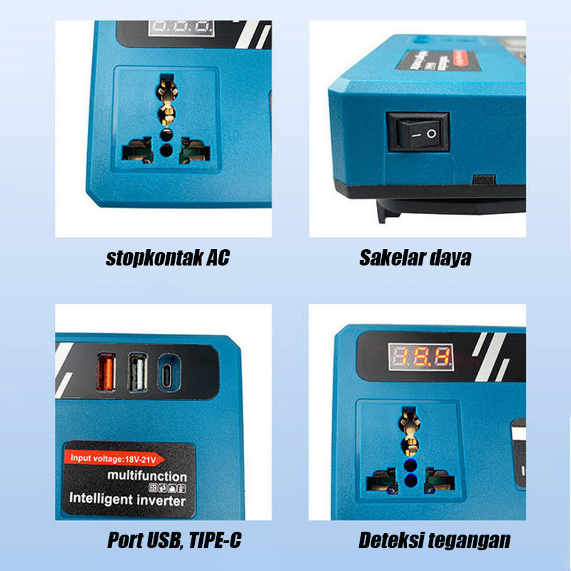 COD Inverter Baterai Lithium Makita /Dengan Soket Konversi Daya Multifungsi Makita 21V Ke 220V/Inverter USB Pengisian Cepat DIY/Dengan 2 Port USB Dan 1 Port Tipe-C
