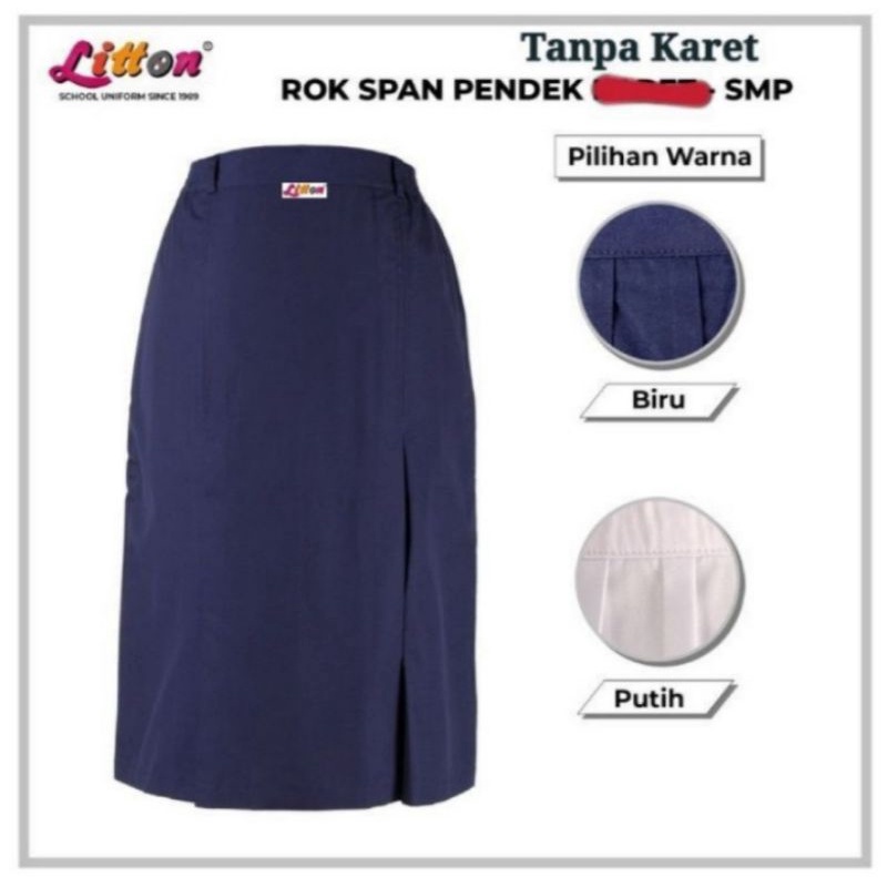 Rok sekolah span pendek SMP pinggang ban / LITTON rok span pendek biru putih coklat SMP ban
