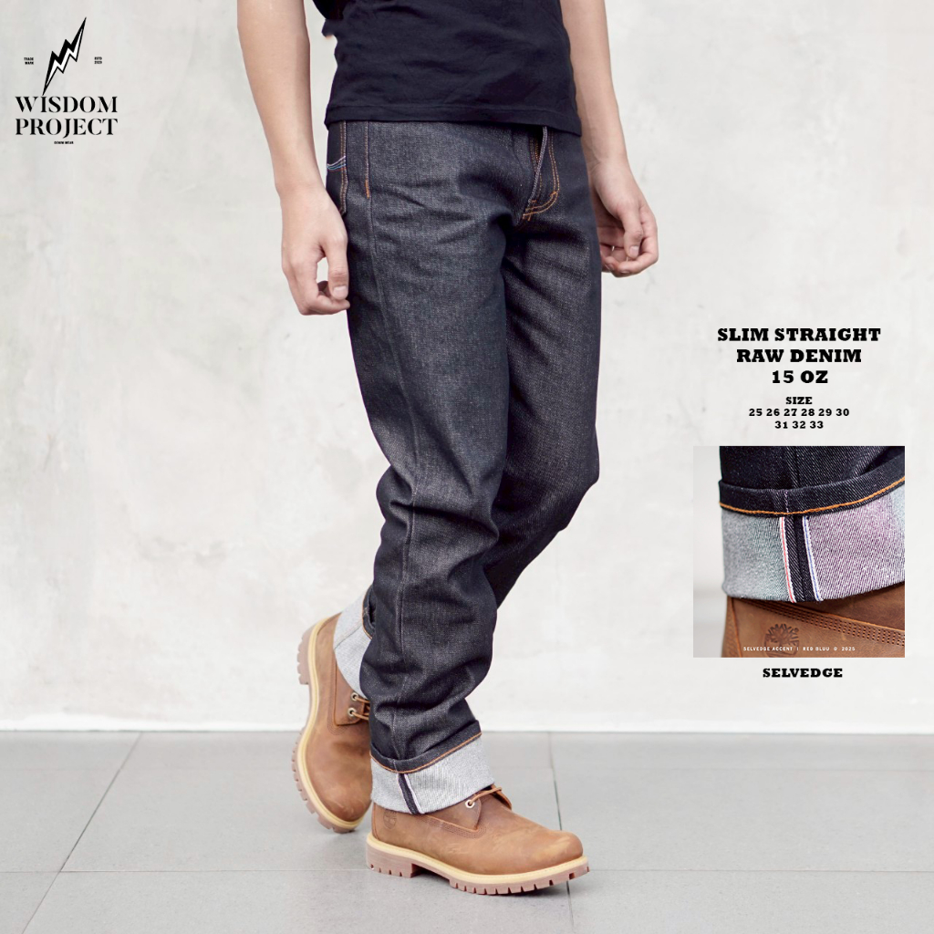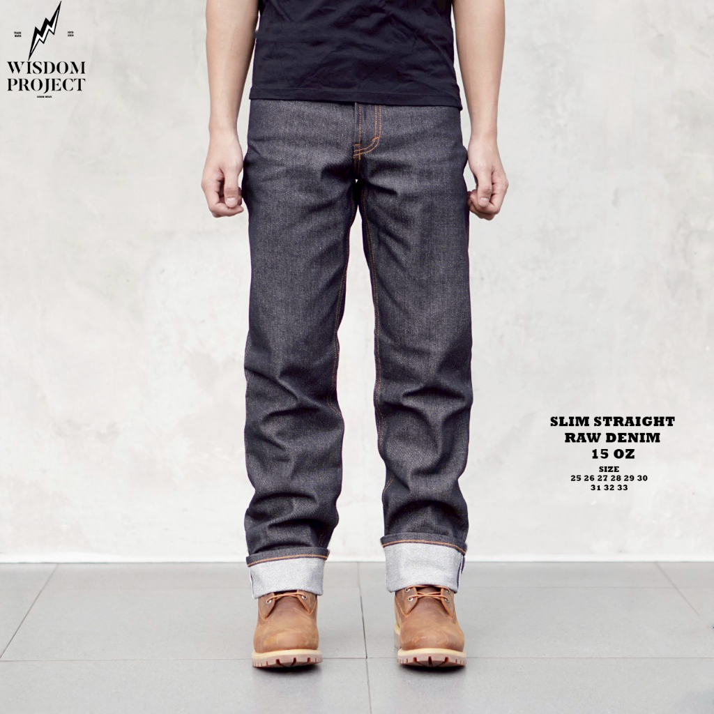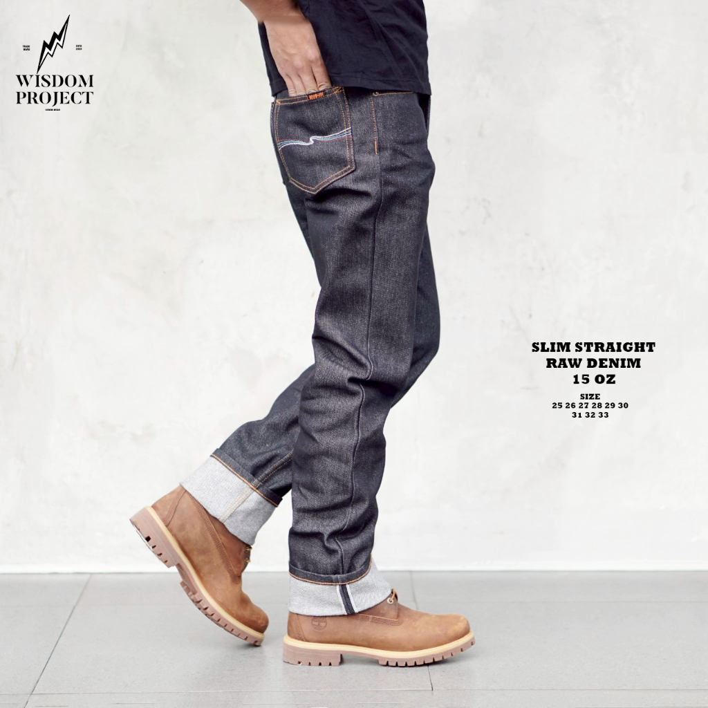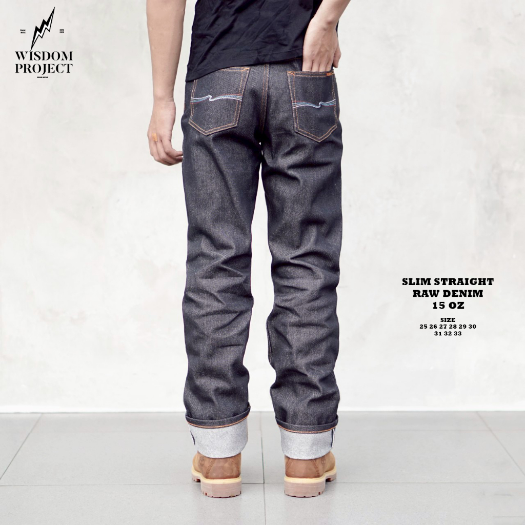 Wisdom Project Celana Jeans Slim Straight Raw Denim 15 Oz Selvedge Premium Non Stretch - Jeans Selvedge Ukuran Tanggung Dan Dewasa - Jeans Couple Selvedge