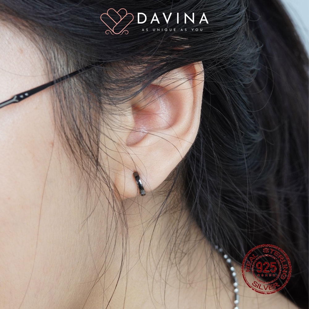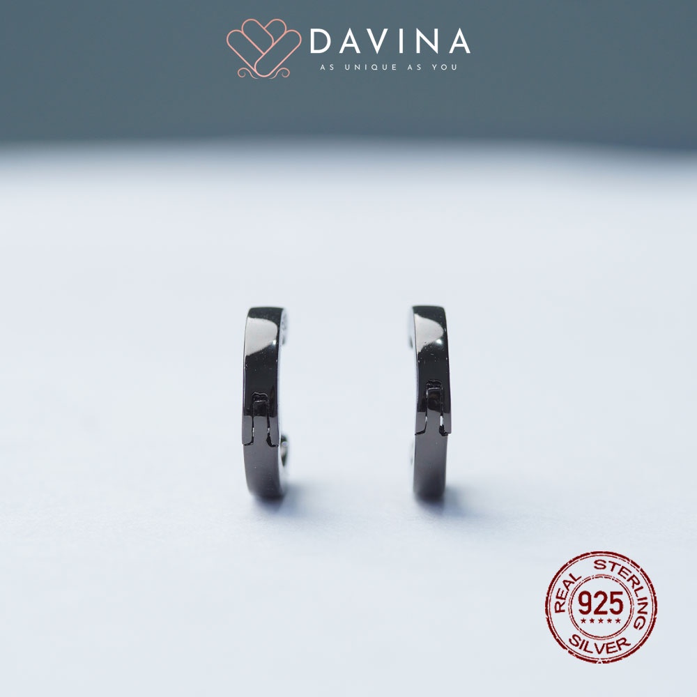DAVINA Ladies Noire Earrings Black Color Sterling Silver 925 - Anting Wanita Perak S925 Bulat