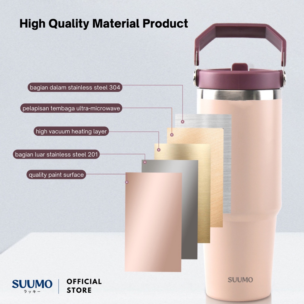 Suumo Tumbler Sedotan 900ml Stainless Steel 304 Premium