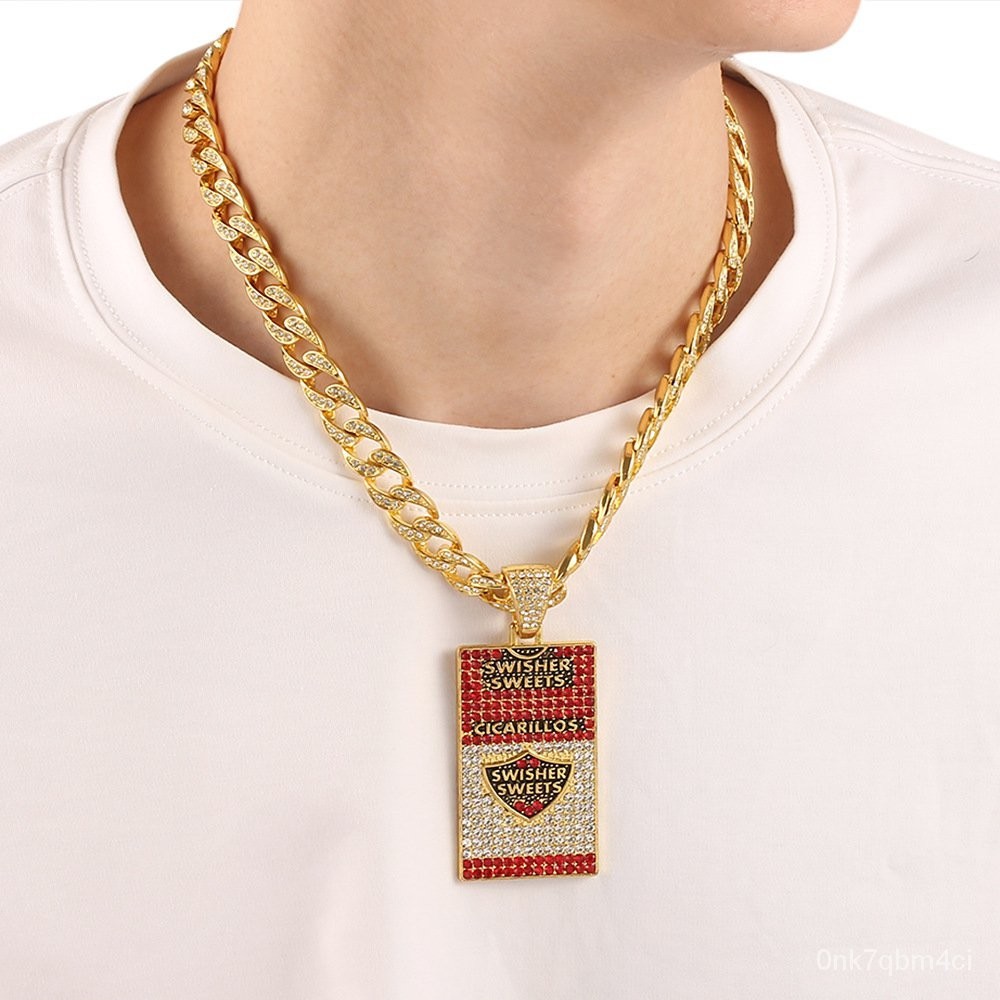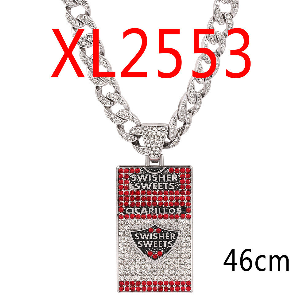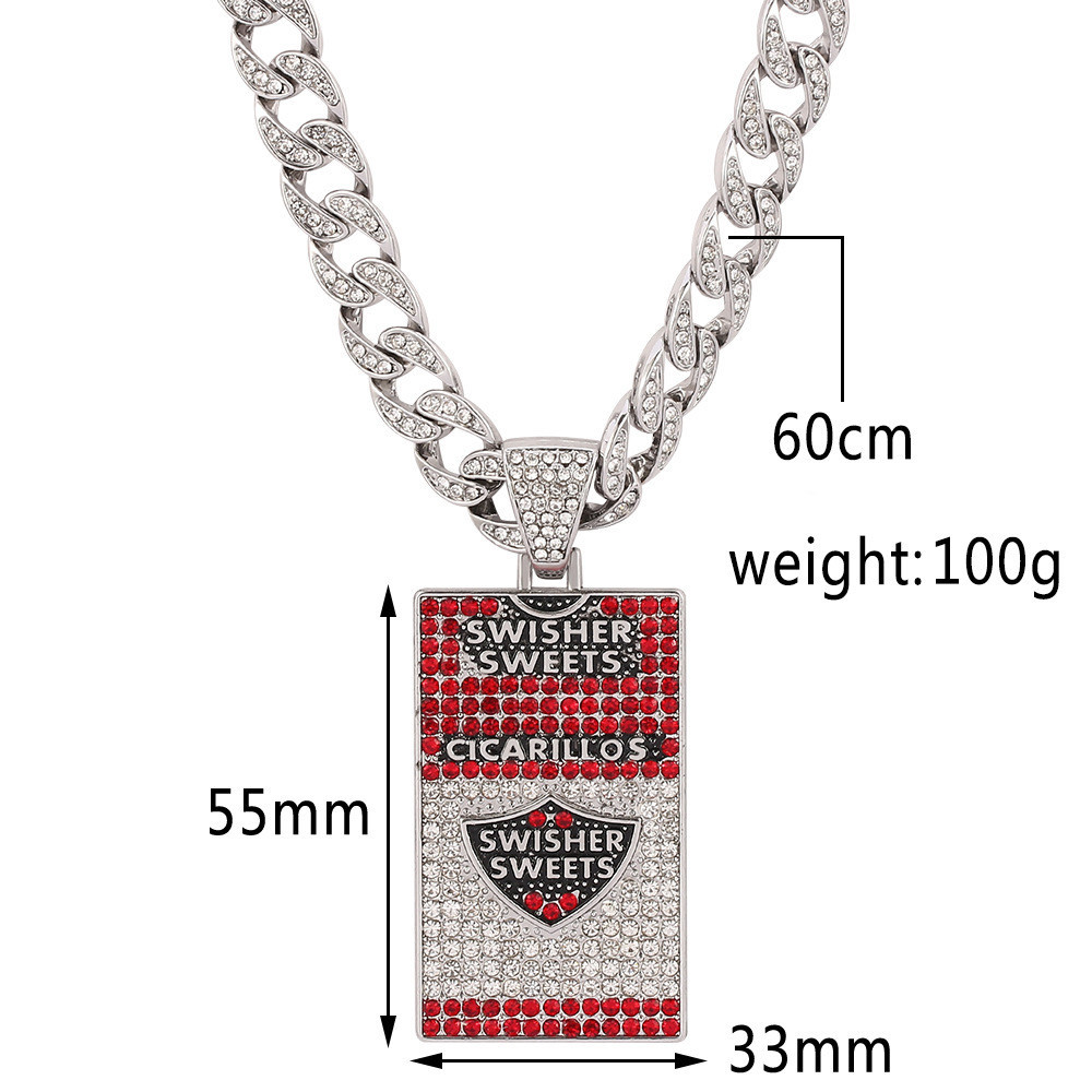 Kefeng Cross-Border Wholesale Full Diamond Diamond Cuban Link Chain Accessories Shield Trendy Personality Pendant Necklace AWRE