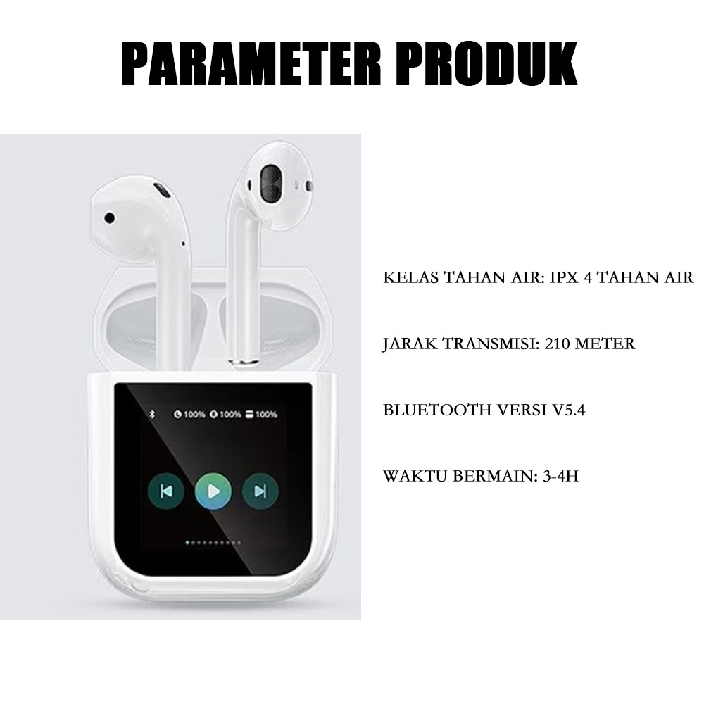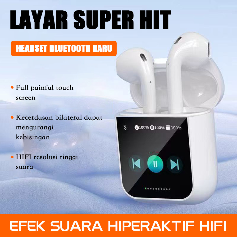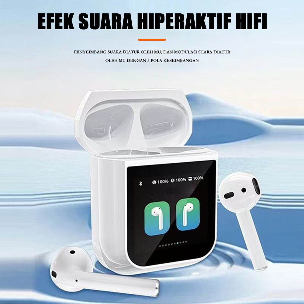 Tws Suara Sekitar Wireless Bluetooth Headset Layar 360° Lcd Sentuh Earbuds Bass Super Full Anc/Enc Active Noise Reduction