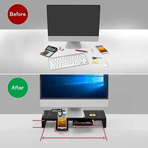 Dudukan Monitor Laptop Meja Tinggi dengan USB 3.0 dan Port Pengisian Daya Elevated Desk Laptop Monitor Stand with USB 3.0 and Charging Port Warna Hitam