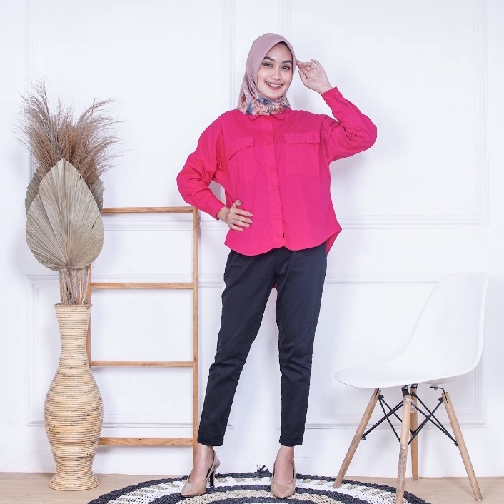 KEMEJA POPLIN OVERSIZE WANITA FUSCHIA