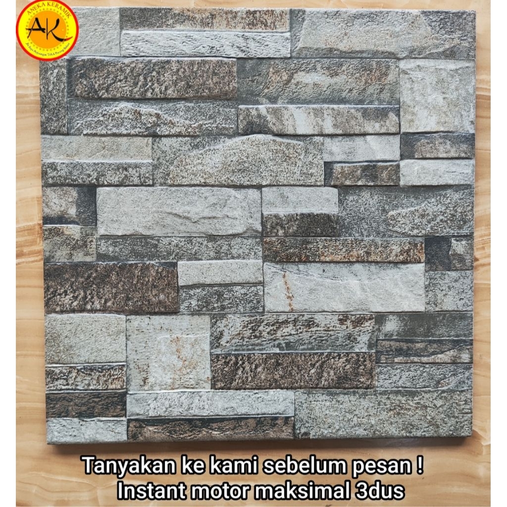 Canyonland grey 40x40 Keramik Lantai Teras Garasi Dinding Kasar Motif 3D Batu Alam Timbul