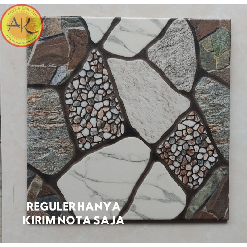 Keramik Lantai Kasar Teras Garasi Motif Batu Alam Timbul 40x40 Village Grey