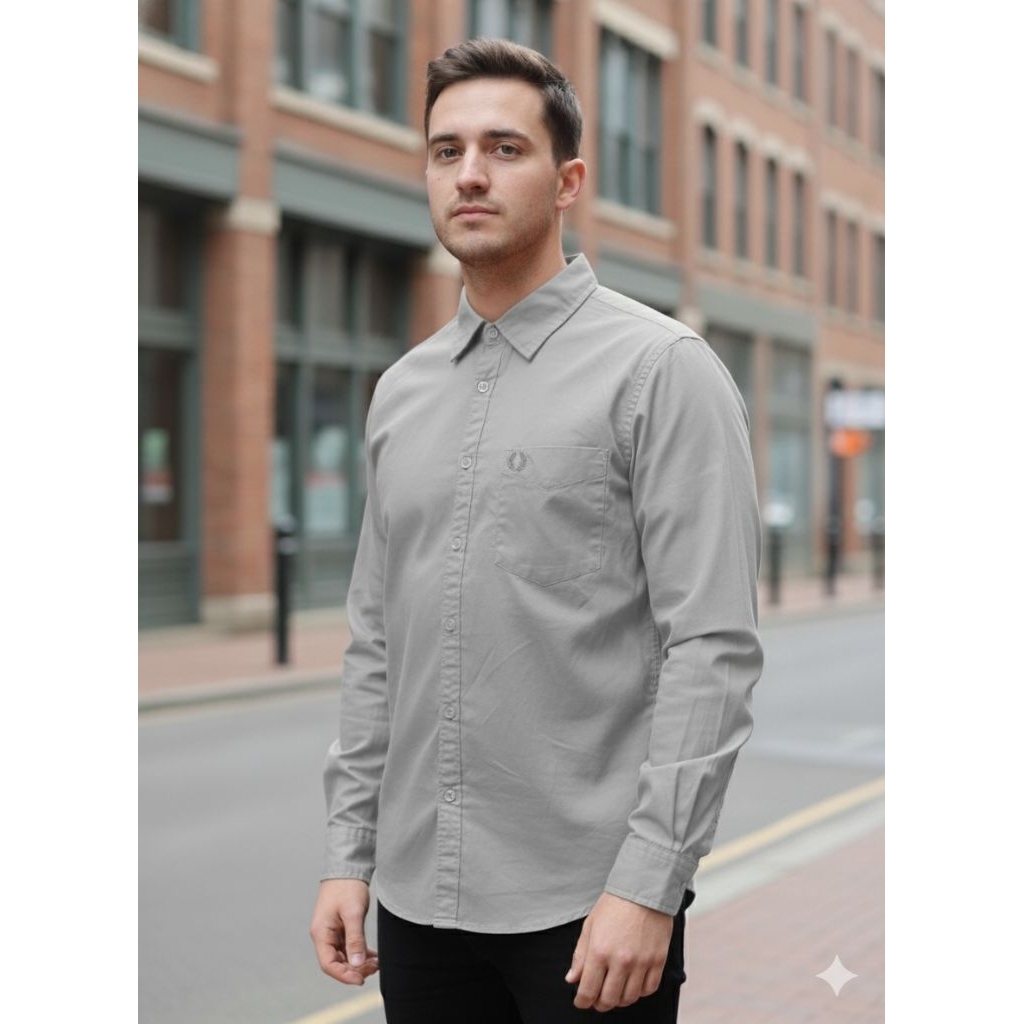 Kemeja Lengan Panjang Padi Formal / Kemeja Panjang Basic Bordir Padi Pria Casual Slim Fit