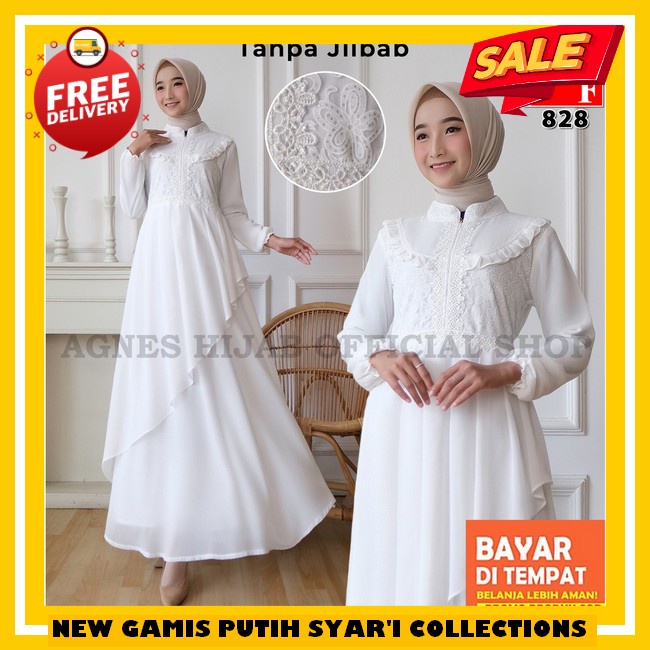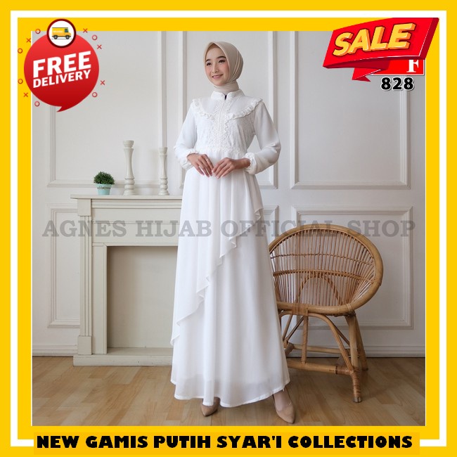 Gamis Putih Mewah Import Wanita Asia Eropa Arab Dubai Turkey Original S023 Agnes Hijab - Syakayla Dress Gamis Putih Wanita Gamis Plisket Brukat Baju Muslim Wanita Busana Lebaran Umroh Terbaru 828