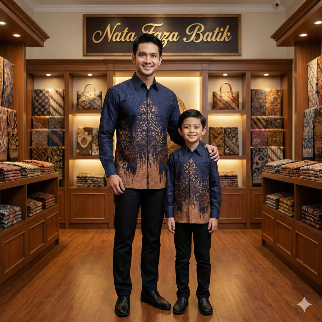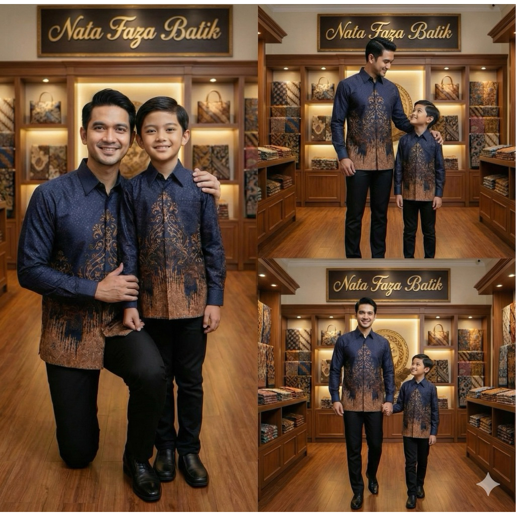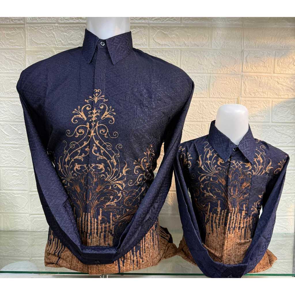 PILIHAN MODERN NAVY KEMEJA Couple Batik Ayah Anak Lengan Panjang Serat Dobby Premium Pakai Furing Motif Ornamen Sulur KLasik Pius Eksklusif Adem Nyaman Cocok untuk Kondangan dan Resmi