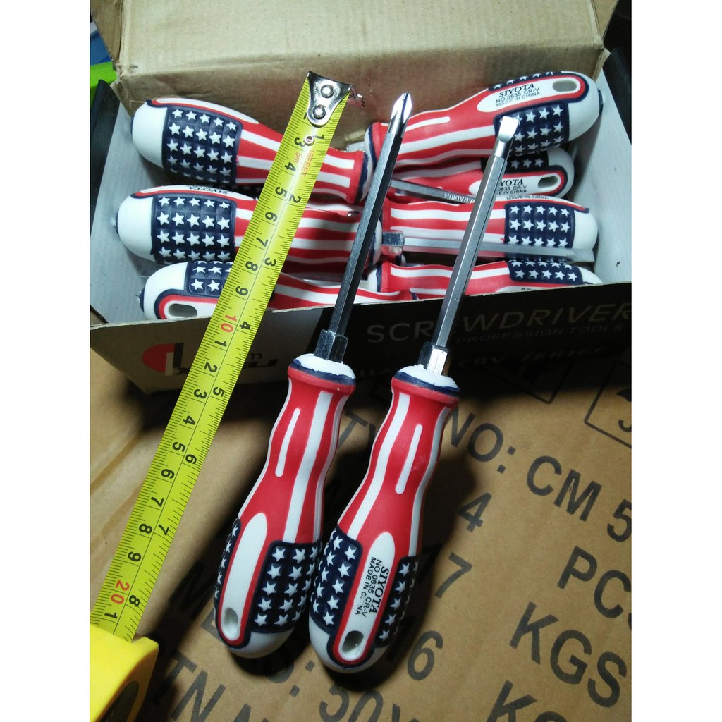 PAKET USAHA 10PCS Obeng Magnet Amerika Bolak Balik Gagang Karet - 8 Inch - High Quality HARGA PROMO