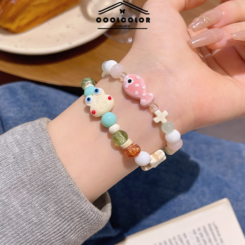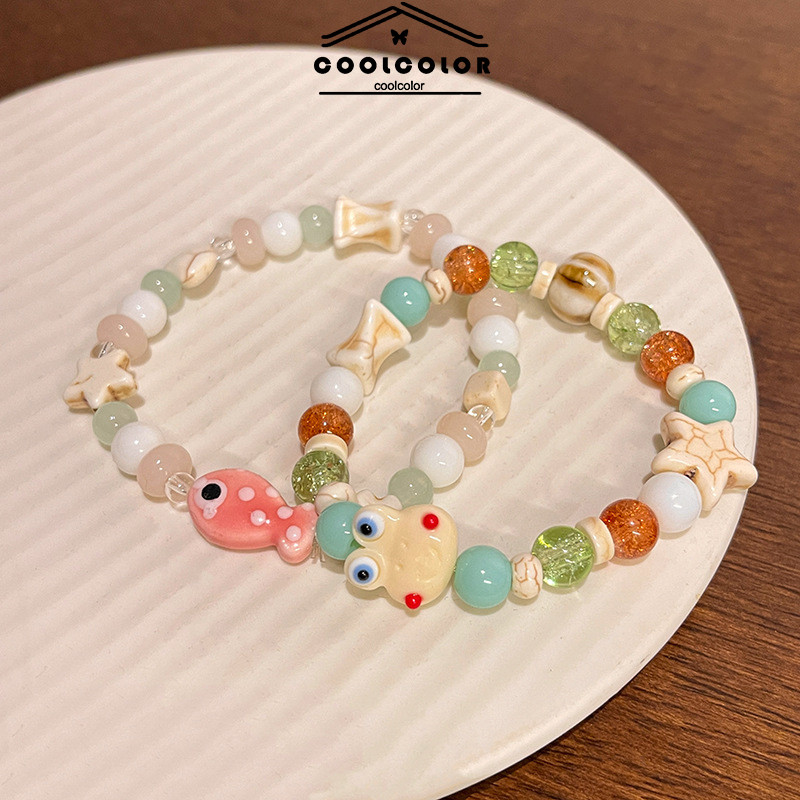 COD Gelang Manik-Manik Ikan dan Katak Kecil yang Imut Gelang Elastis Manis untuk Pelajar -Cl