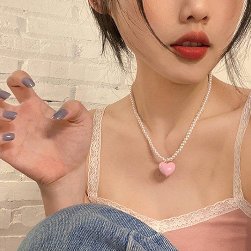 Readystock ️COD Kalung Cinta Manik Manik Mutiara Hati Wanita Desain Ceruk Mewah Ringan Rantai Tulang Selangka Kelas Atas