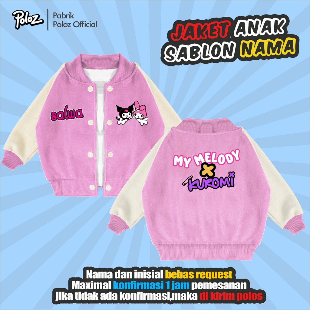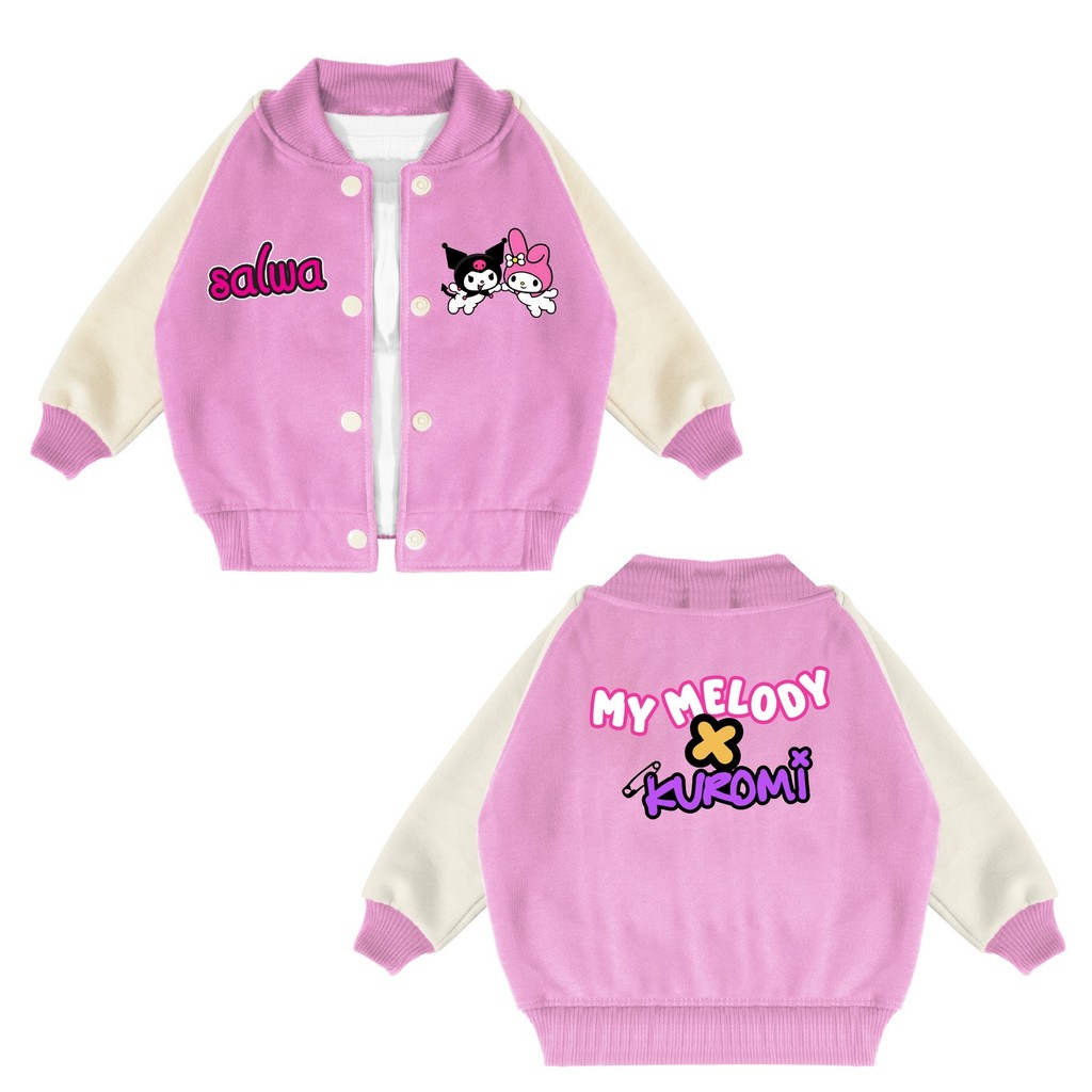 Sweater Anak Perempuan JAKET Varsity cewe dan cowo Costum Sablon Nama Karakter Melody Kuromi Lucu sweater anak original lucu dan Gaul
