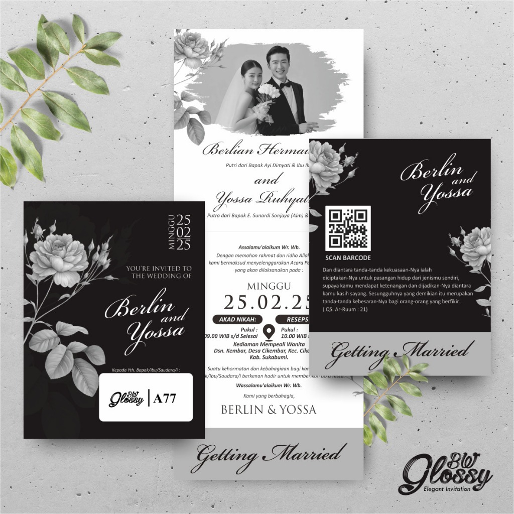 UNDANGAN PERNIKAHAN GLOSSY MENGKILAP ELEGAN - UNDANGAN NIKAH FOTO GLOSSY BW SERI 2