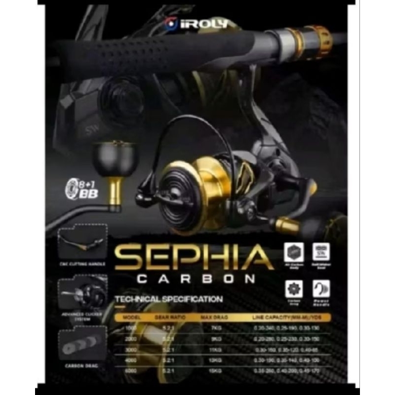 Reel Pancing Iroly Sephia Carbon SW Seal & Iroly Sephia + Plus