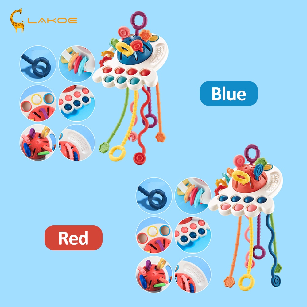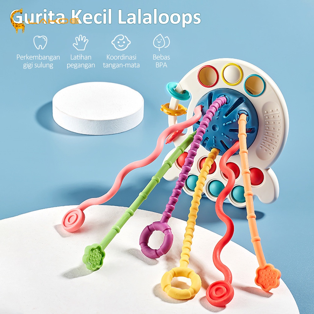LAKOEOFFICIALMALL Mainan Edukasi Bayi Pop It Teether Bayi Tarik Panjang Mainan Gigitan Bayi Bahan Silikon Bentuk Gurita BPA Free