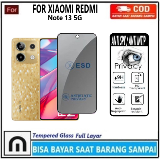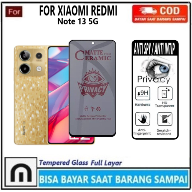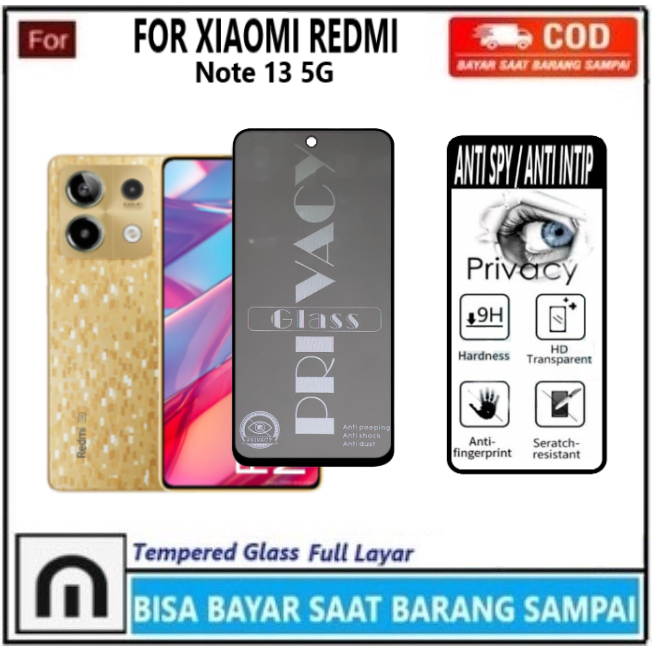 Tempered Glass Anti Spy Xiaomi Redmi Note 13 5G Anti Gores Privacy Full Layar Anti Intip Anti Minyak Anti Pecah