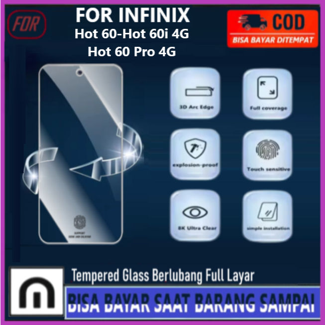 Tempered Glass Bening Berlubang Infinix Hot 60 Hot 60i 4G 60 Pro 4G Anti Gores Kaca dengan Lubang kamera depan Full Layar Screen Protector Pelindung Layar Hp Kaca Tebal Anti Pecah