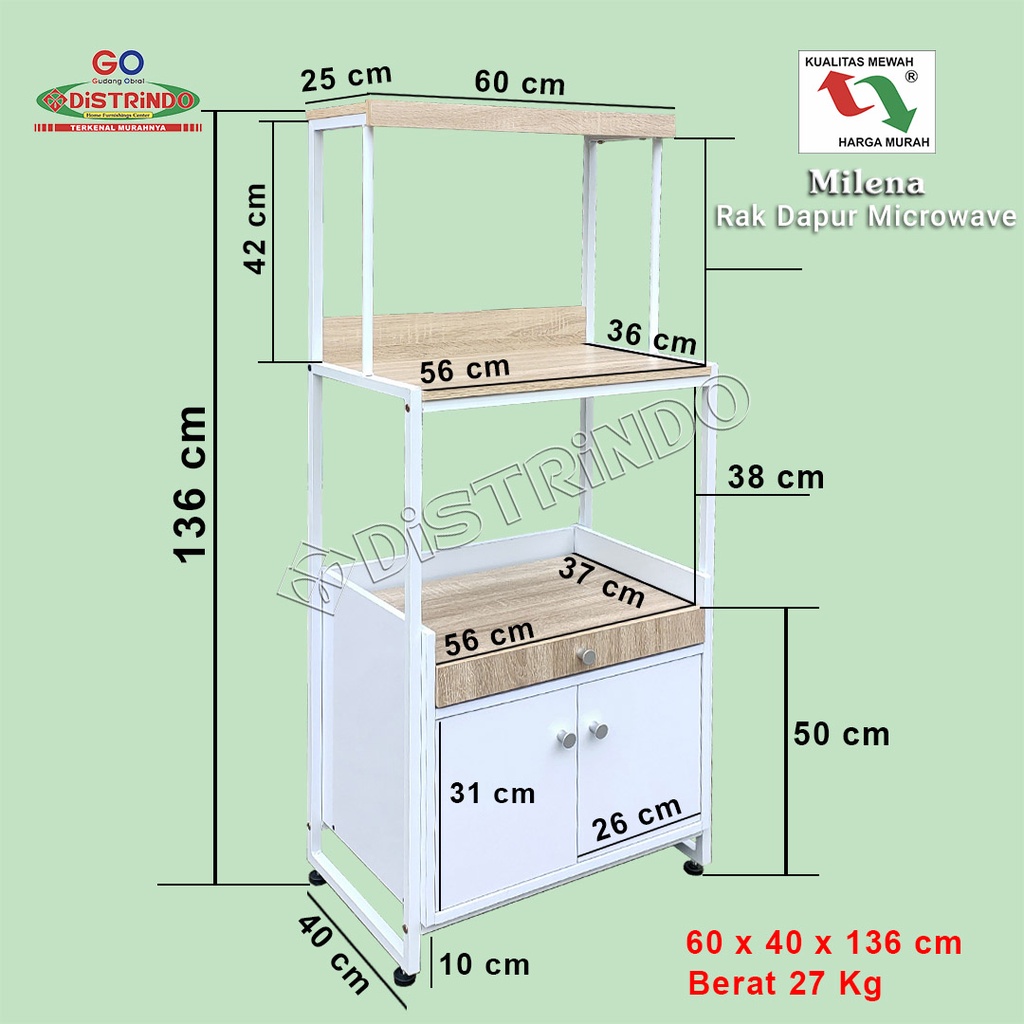 Distrindo - Rak Dapur Serbaguna Untuk Oven Microwave / Magic Com Rangka Besi Papan TEBAL 15mm