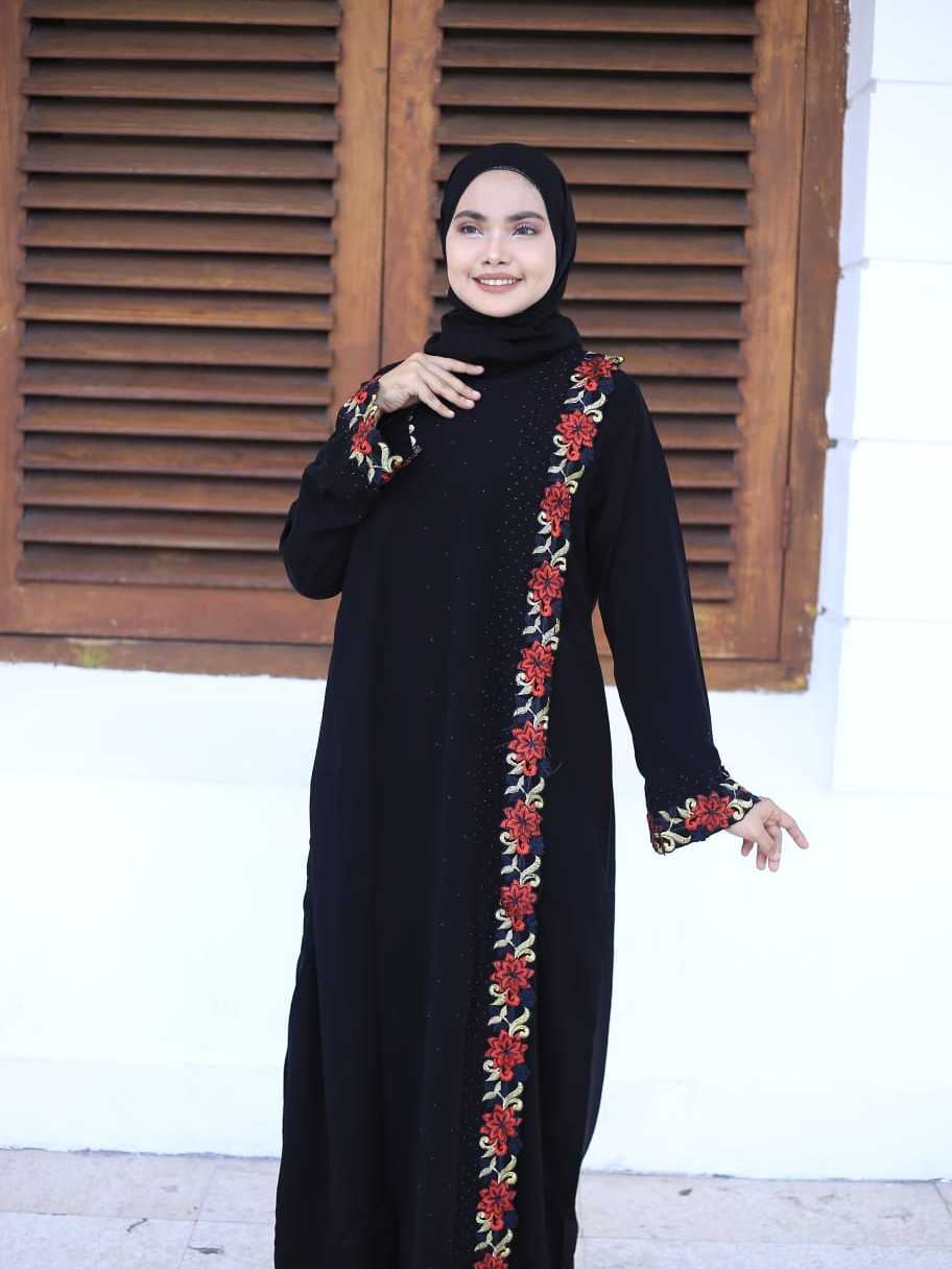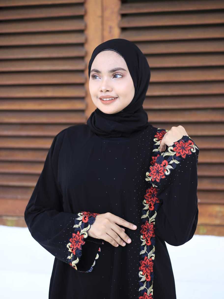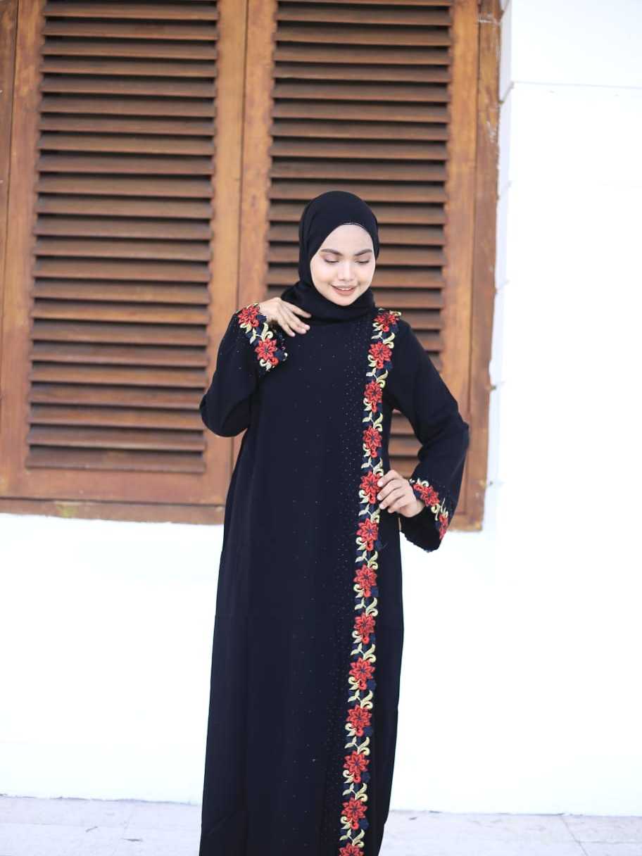 [BISA COD] Abaya gamis hitam pesta arab jettblack Kretek RedRose modis cantik terbaru termurah