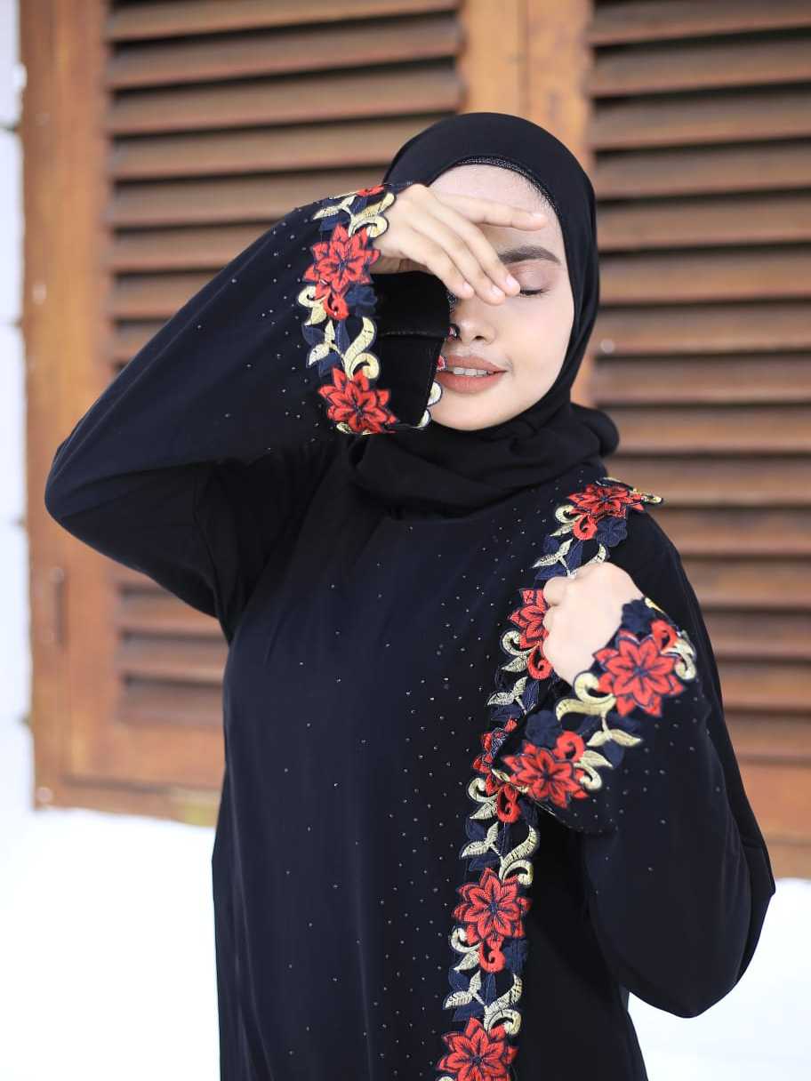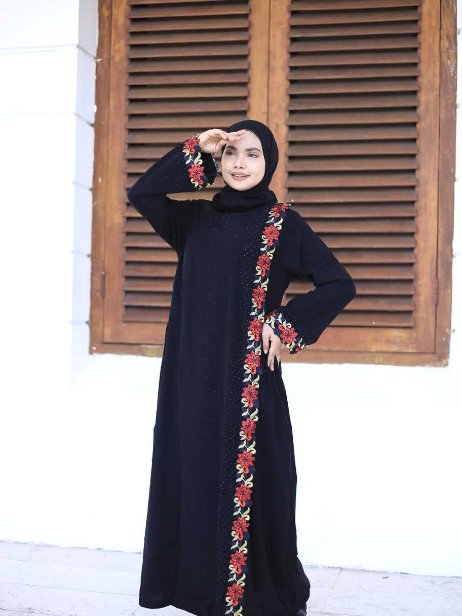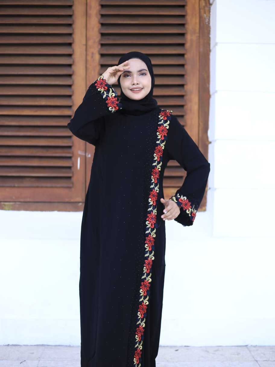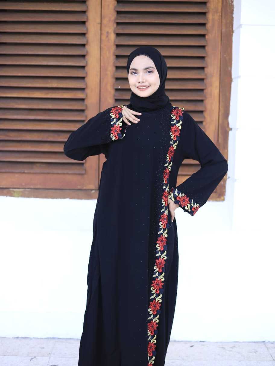 [BISA COD] Abaya gamis hitam pesta arab jettblack Kretek RedRose modis cantik terbaru termurah