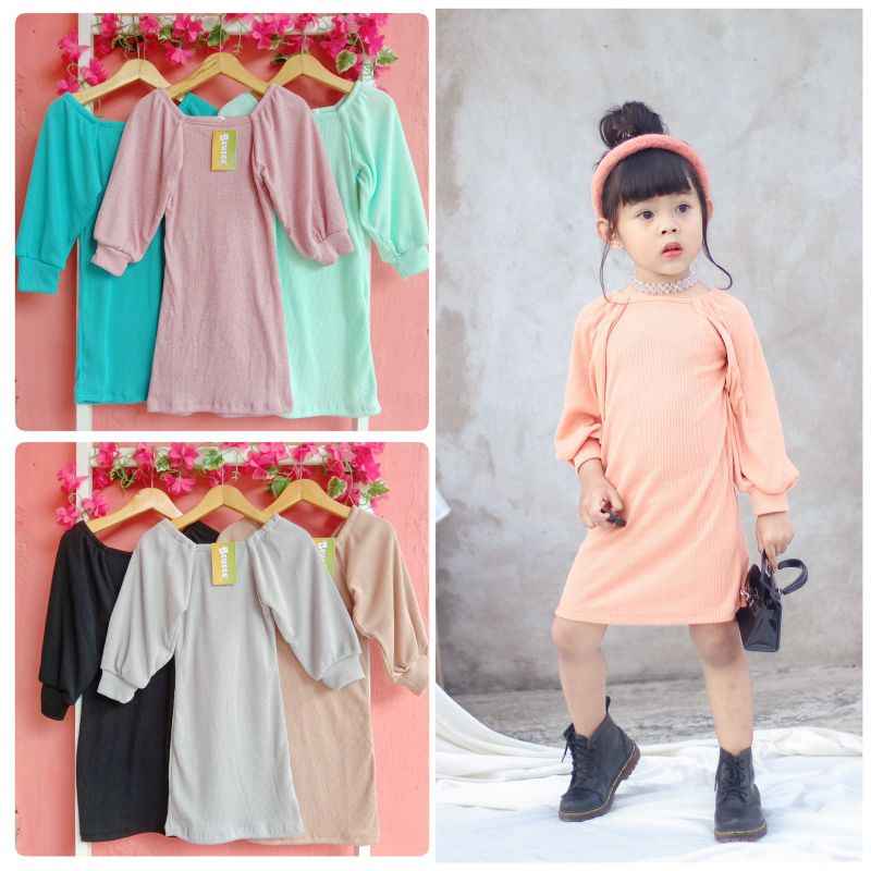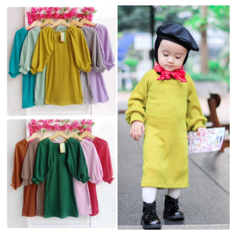 Kamila Dress Katun Rib DRESS VIRAL KEKINIAN by Beuzee Dress LENGAN BALON Lucu Kekinian 1-4 Tahun