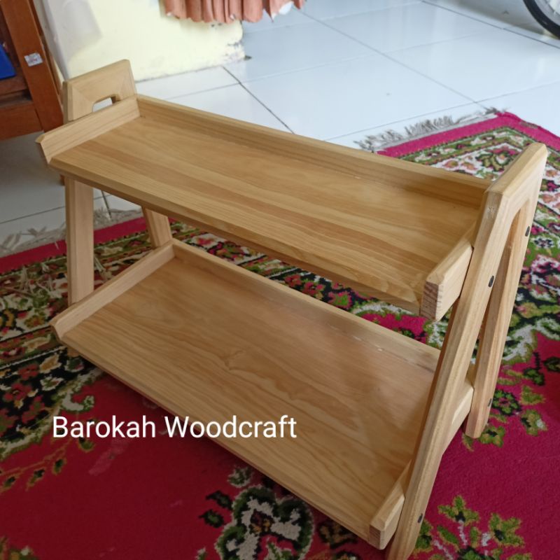Rak Kayu Serbaguna Rak Susun Rak Dapur Rak Hias Rak Bumbu Kayu Pinus Mahoni Plitur Air