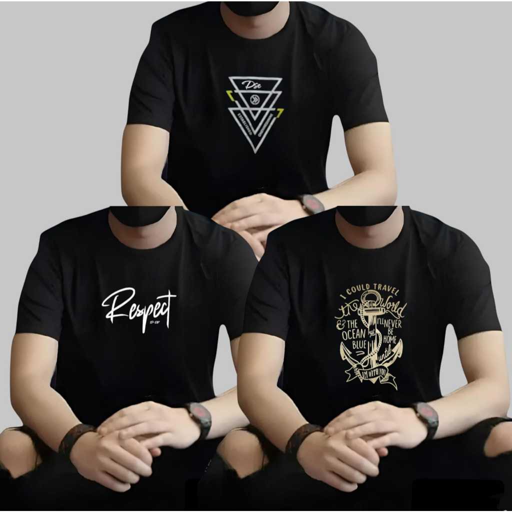 Kaos Pria Distro Paket 3pcs Lengan Pendek Atasan Cowok Original
