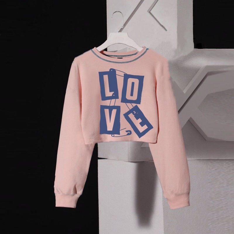 JIA Fashion Baju Sweater Wanita Terbaru / Sweater Crop LOVE Fleece / Switer Cewek / Ootd Kasual Wanita