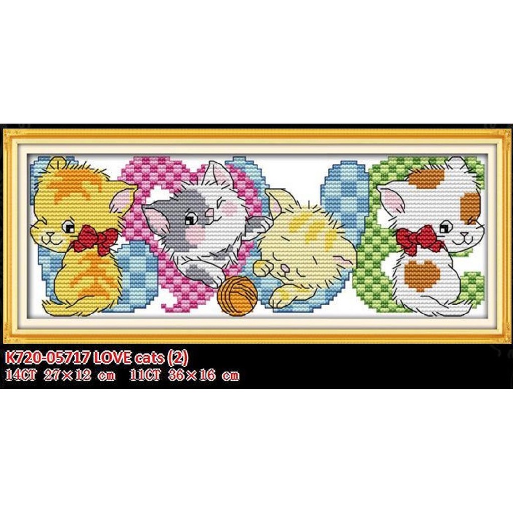 SALE - Paket Kristik Kucing / Cross Stitch Pola di Kain - K720 Love Cats