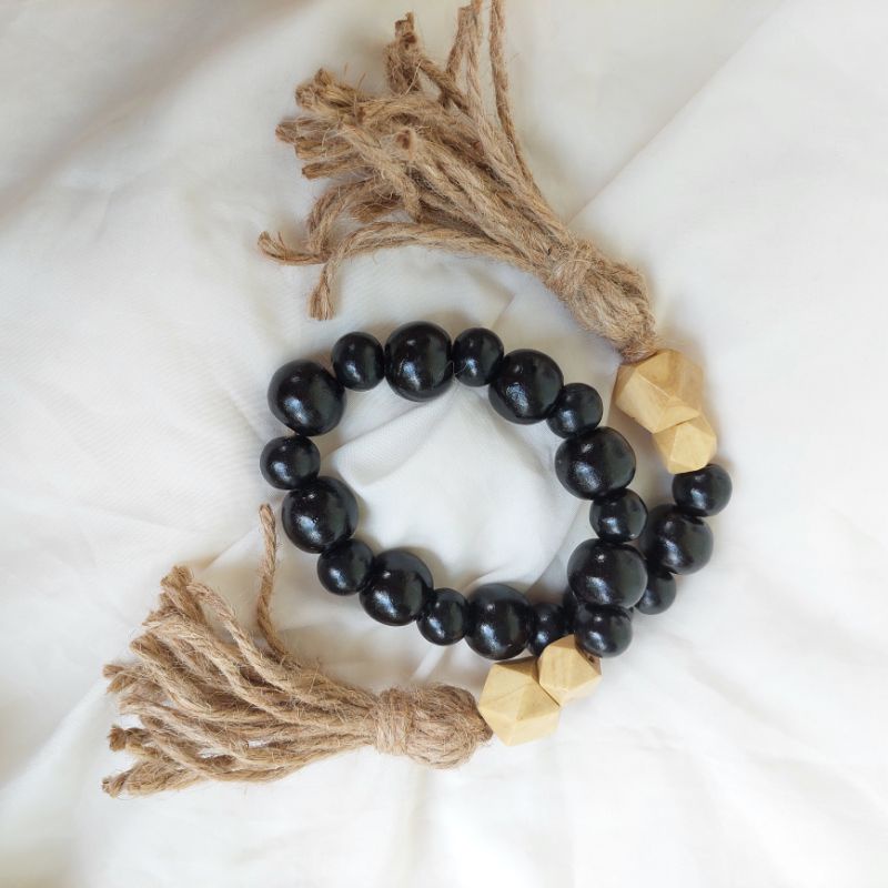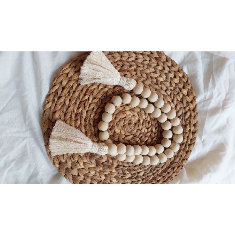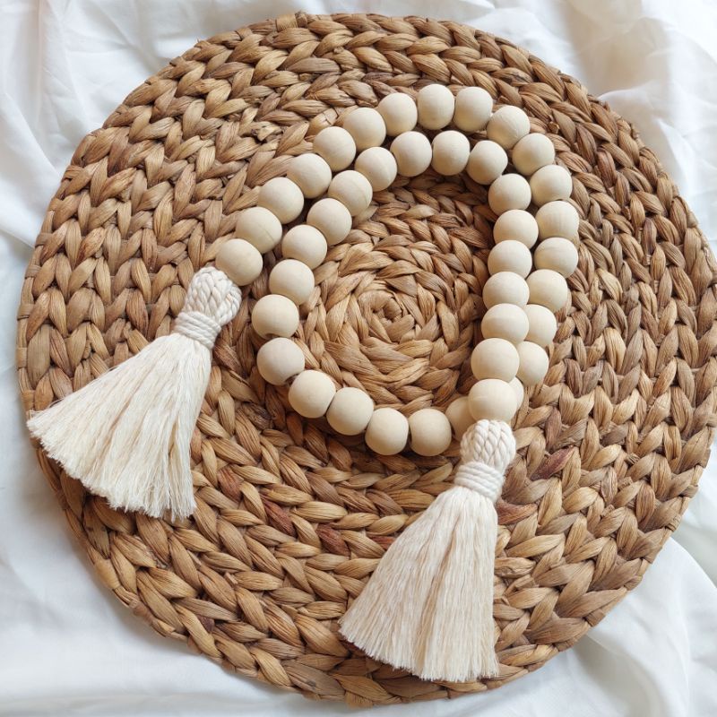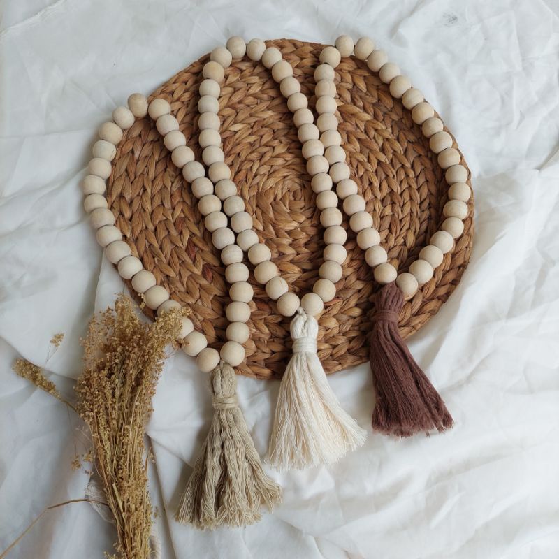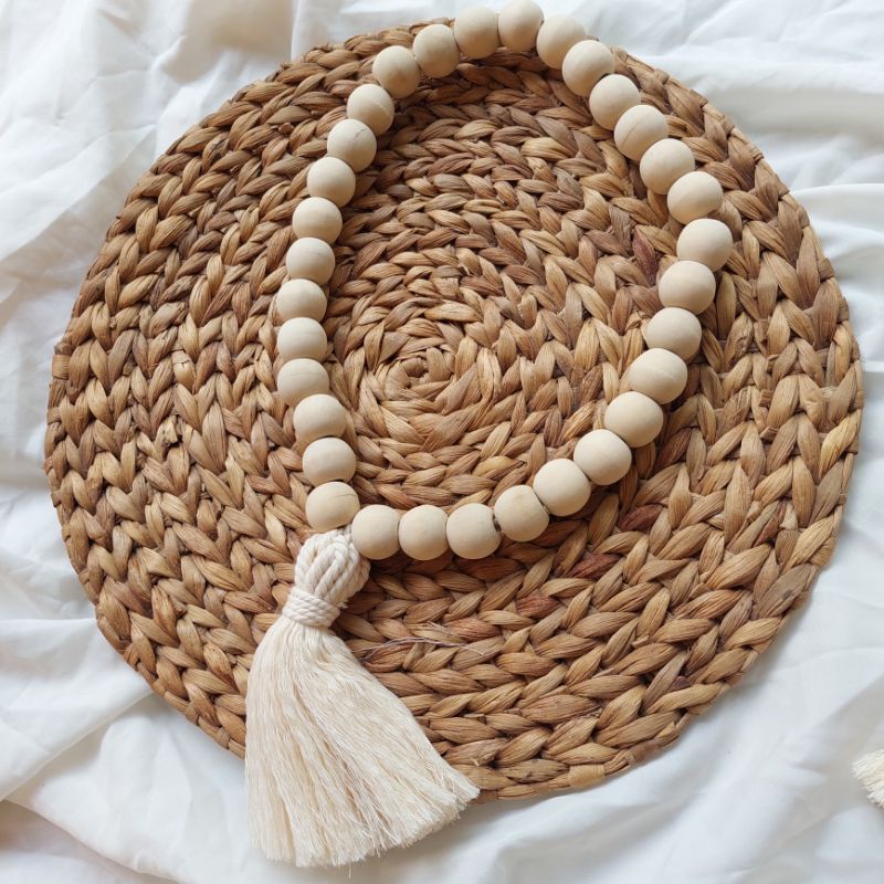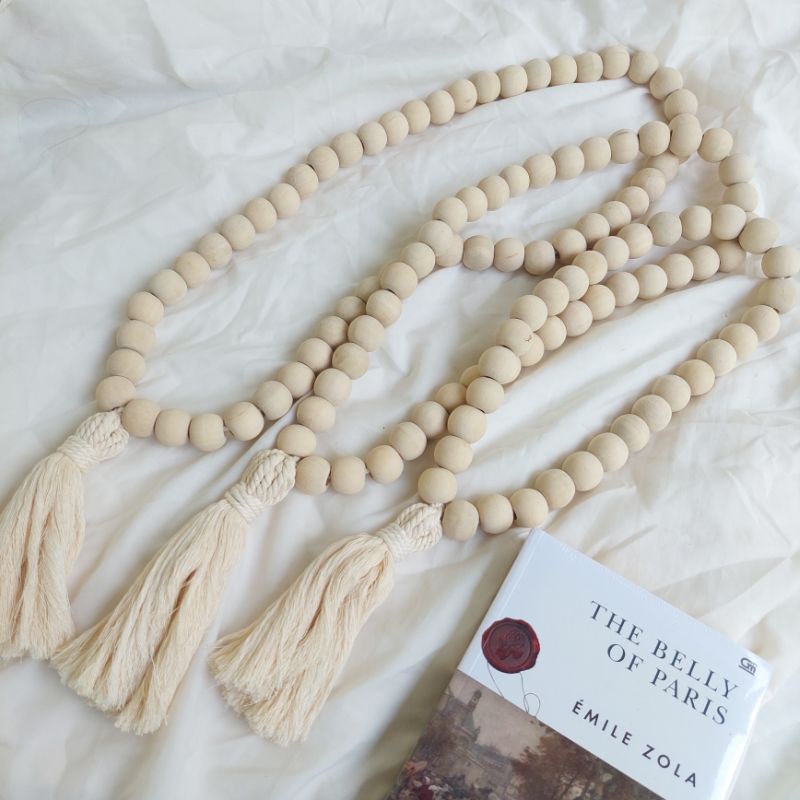 Wood Garland Beads | Farm House Decoration | Macrame Wood Beads | Curtain Tie Backs Tali Tirai