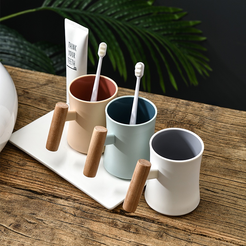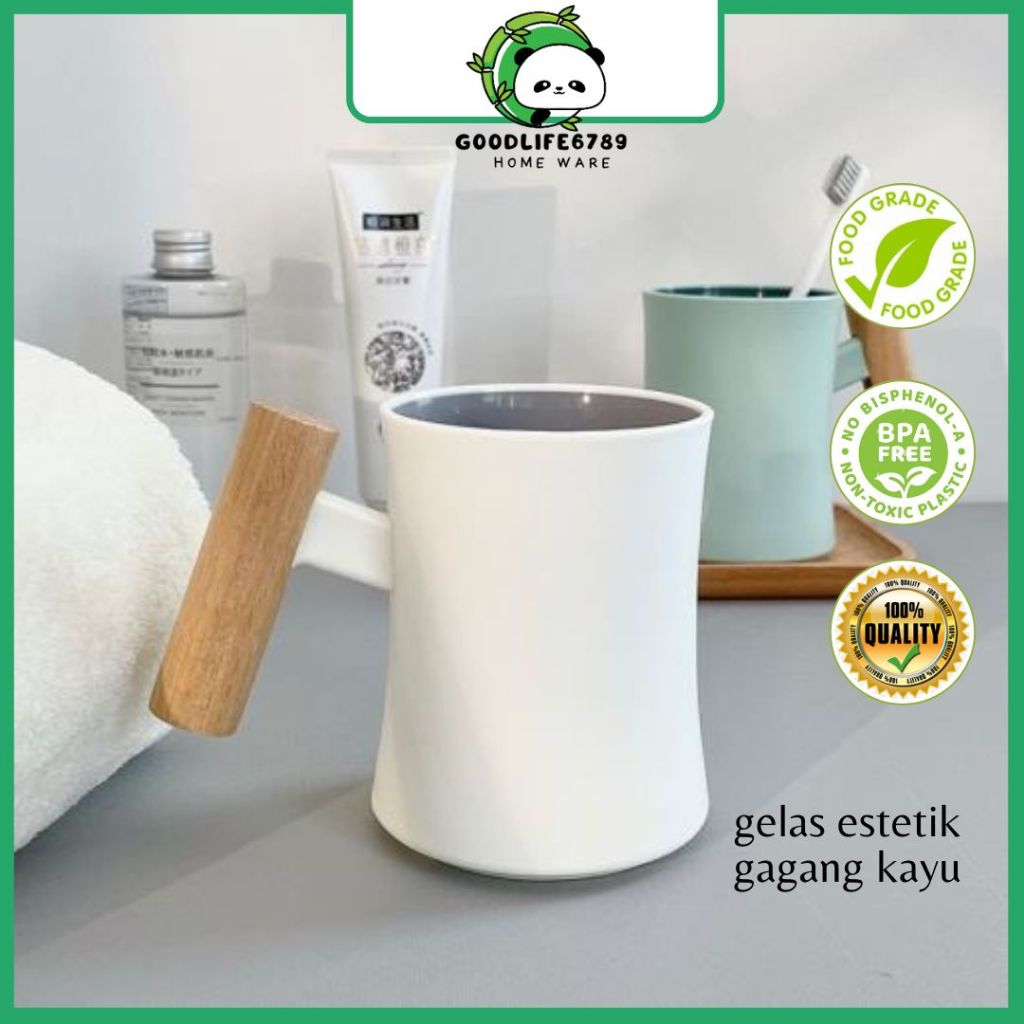 Mug Gelas Plastik Unik Estetik Gagang Kayu /Gelas Coffee Elegant Gelas Kopi Teh Panas TY-5254