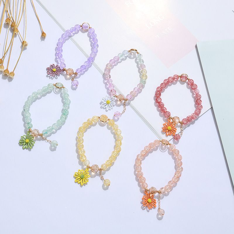 Korean Crystal Daisy Flower Tassel Bracelet Women Girl Bracelets Jewelry Accessories