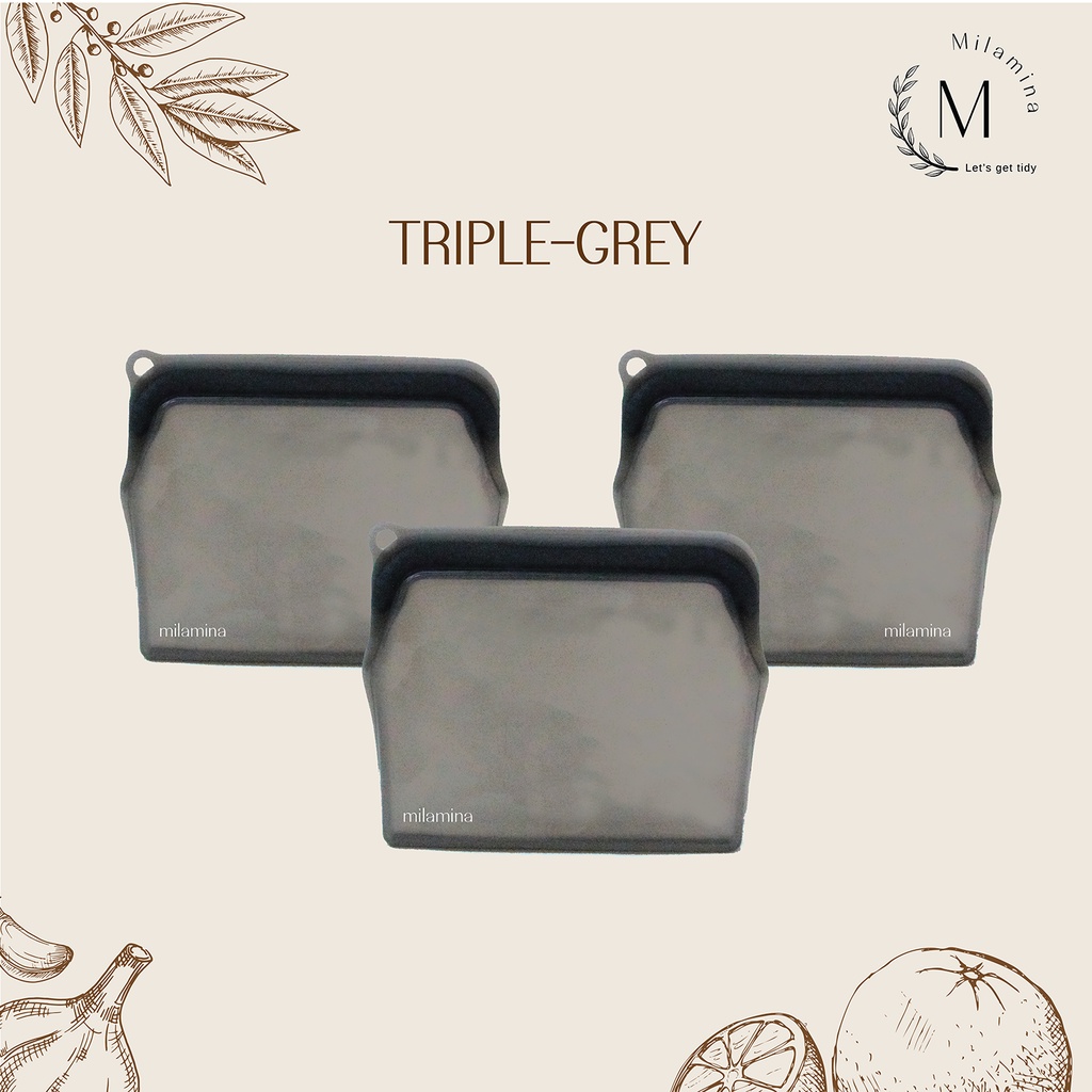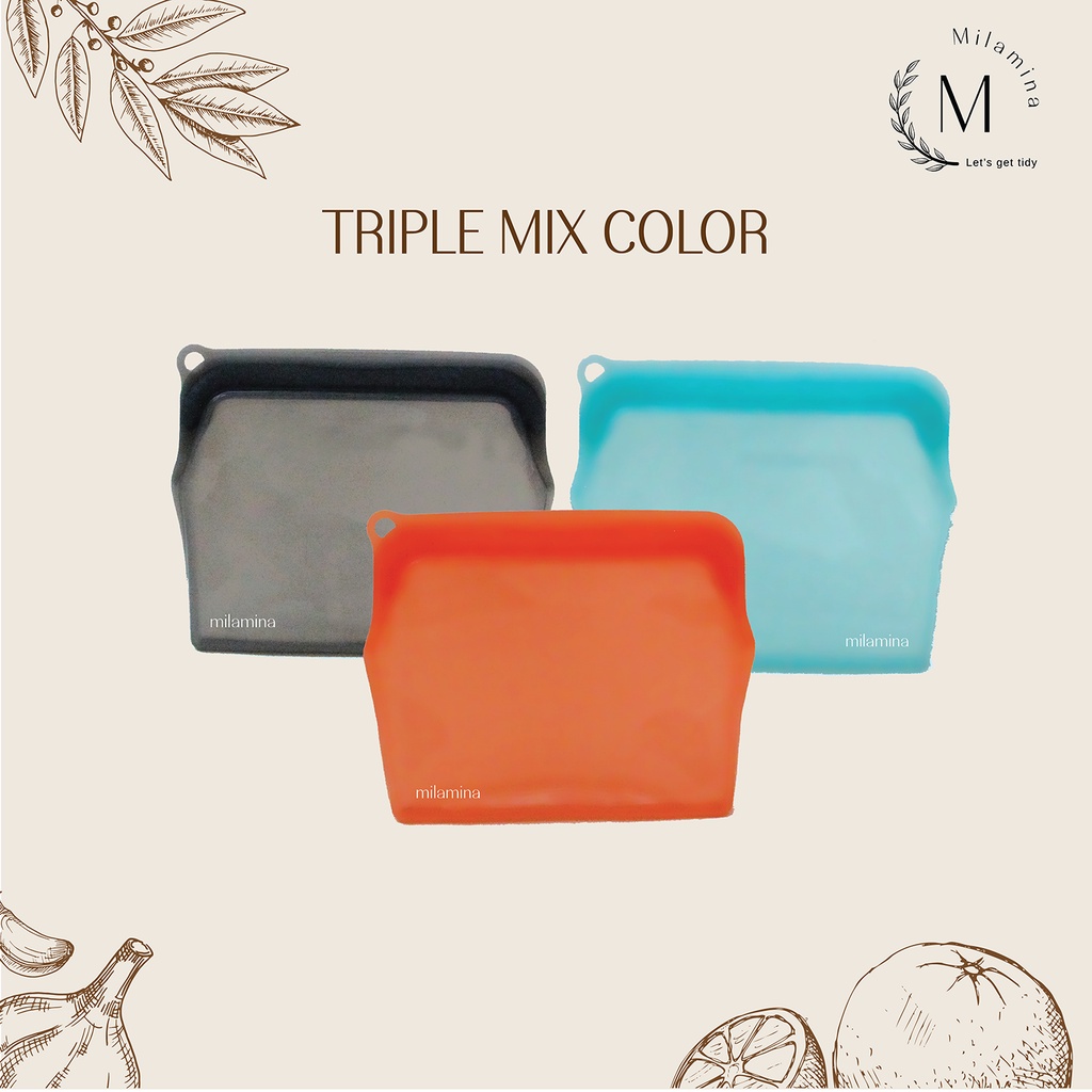 Silicone Bag Triple Mix Medium / M- 470ml/ silicone pouch / bag / food storage / kontainer makanan / ziplock / tempat silikon