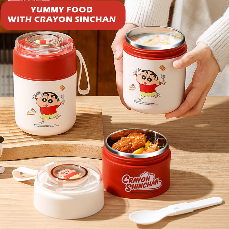 [ORGM] KOTAK+TAS SET | Kotak Bekal Crayon Sinchan Tahan Panas THermos Makanan Set Dengan Tas Stainless 304